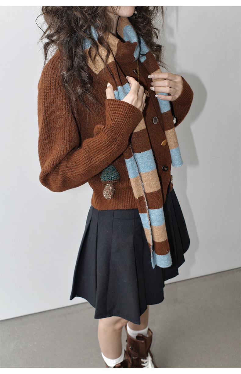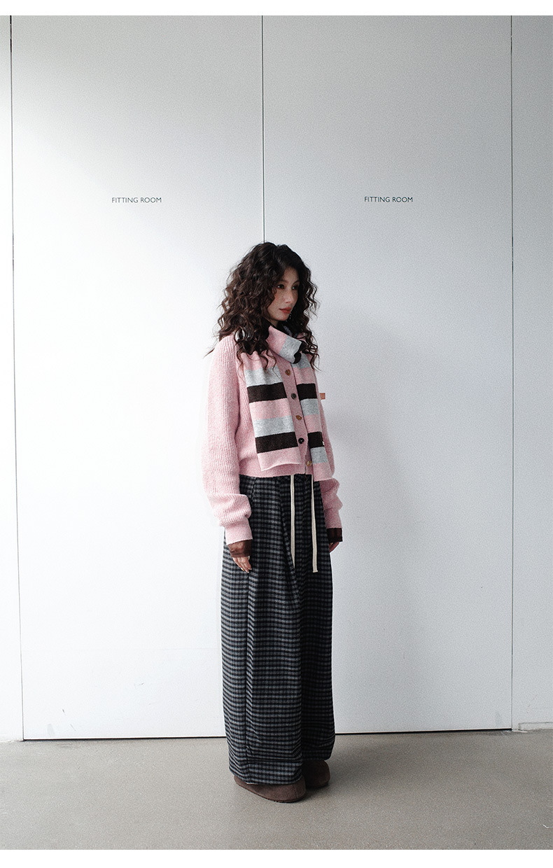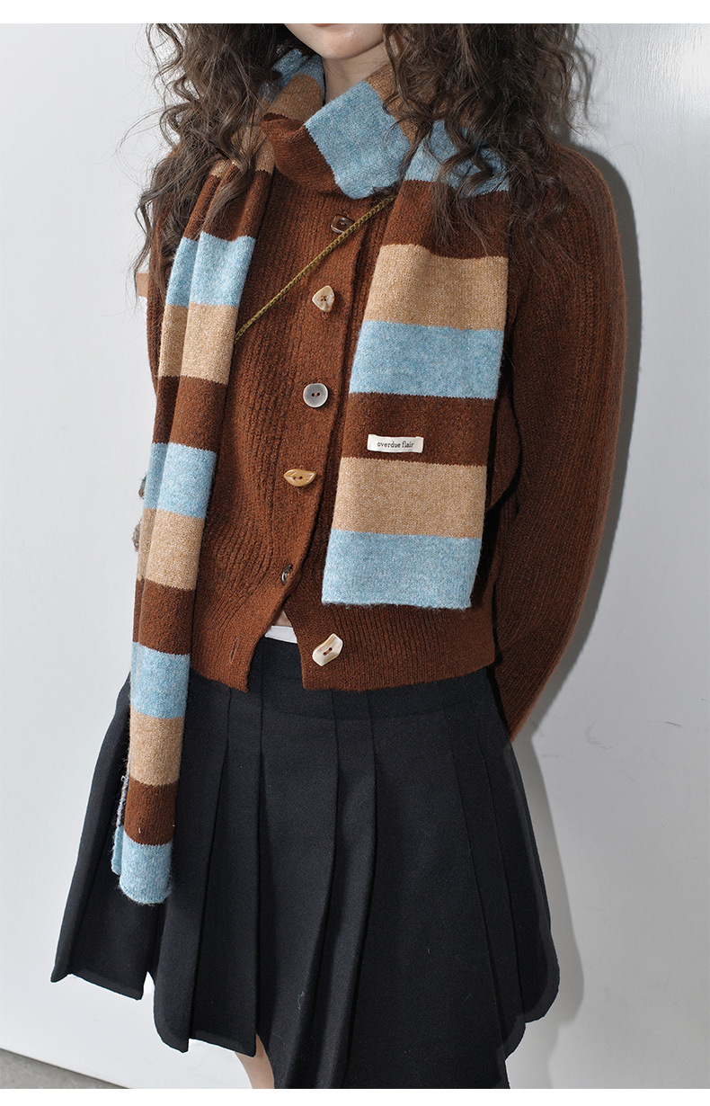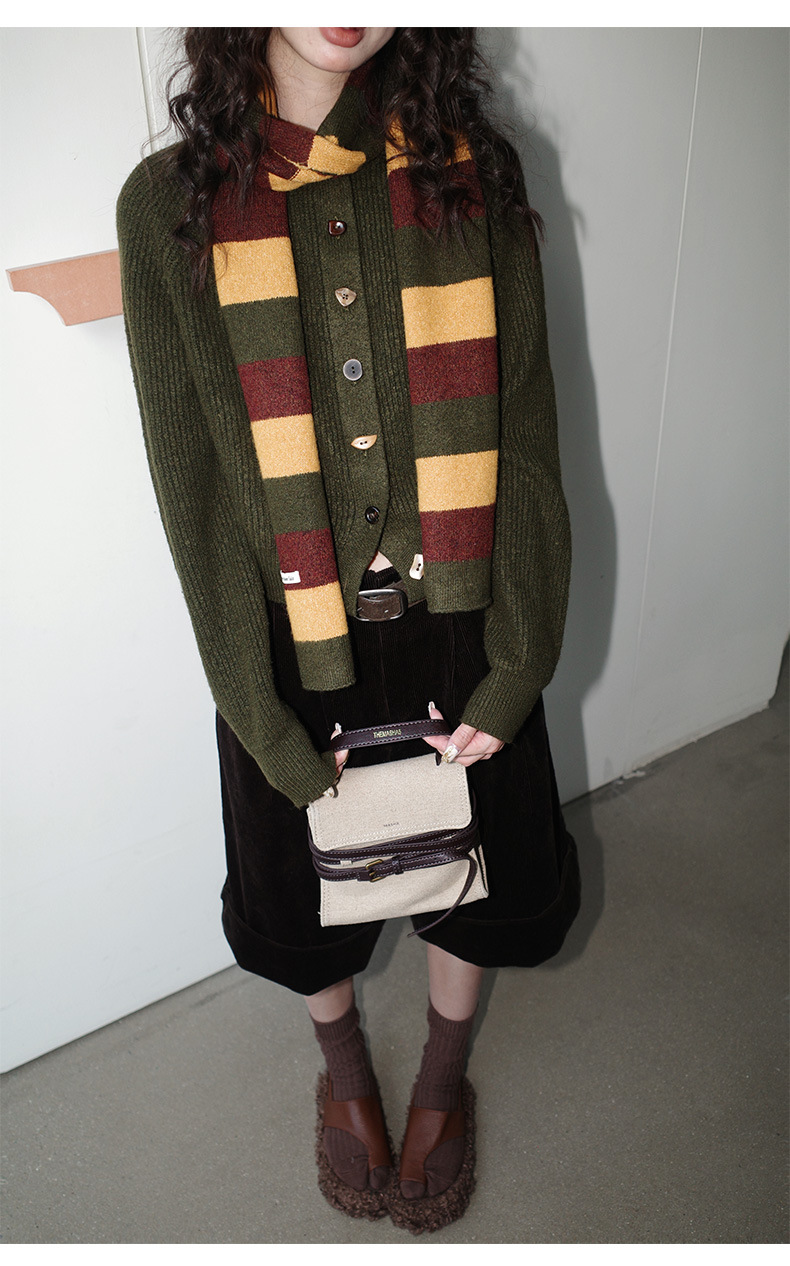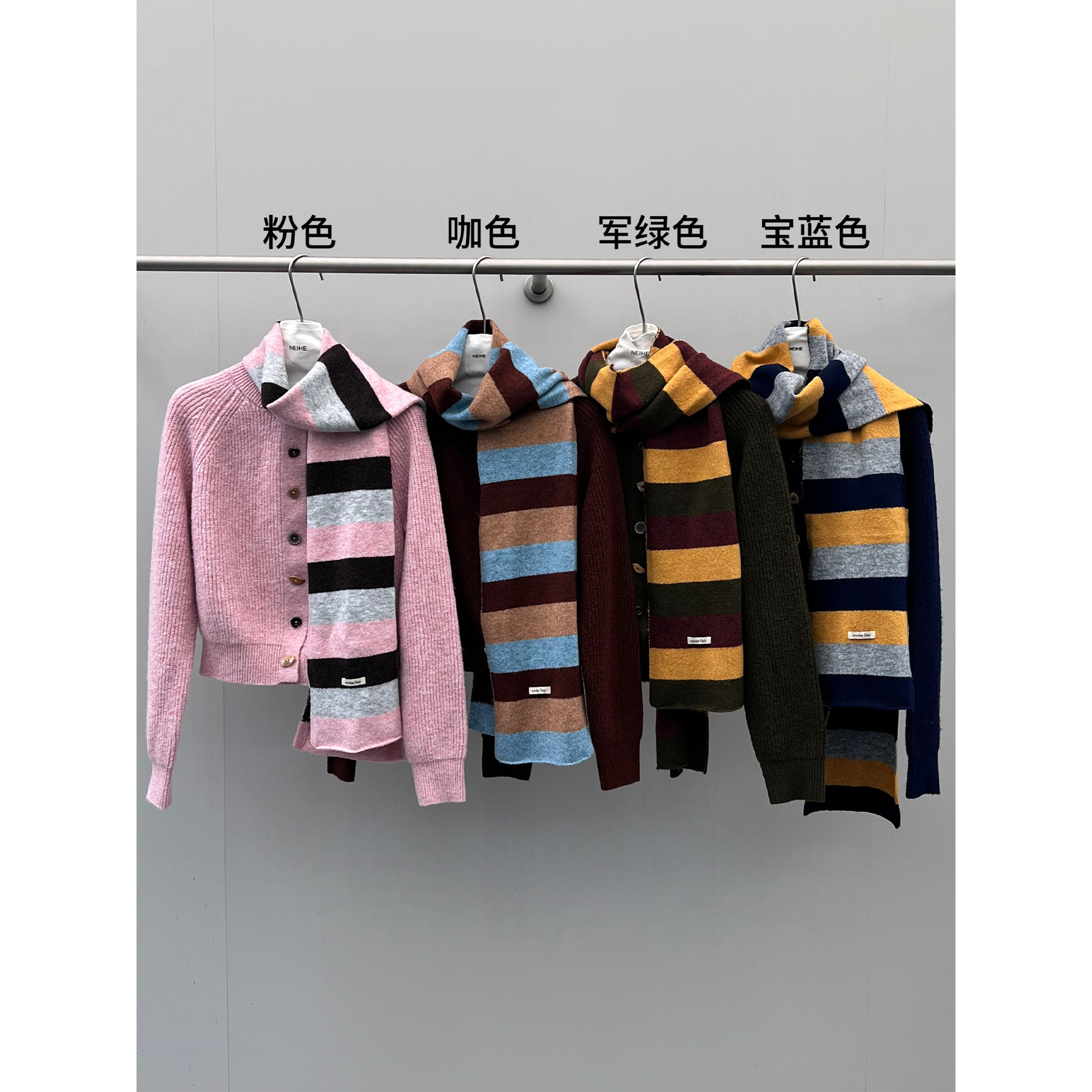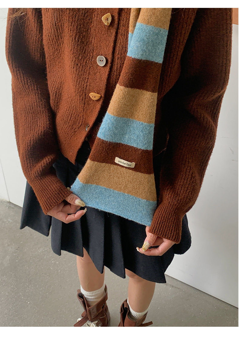 NEIHE内赫韩系穿搭女装圣诞撞色条纹围巾开衫毛衣女秋冬季257216