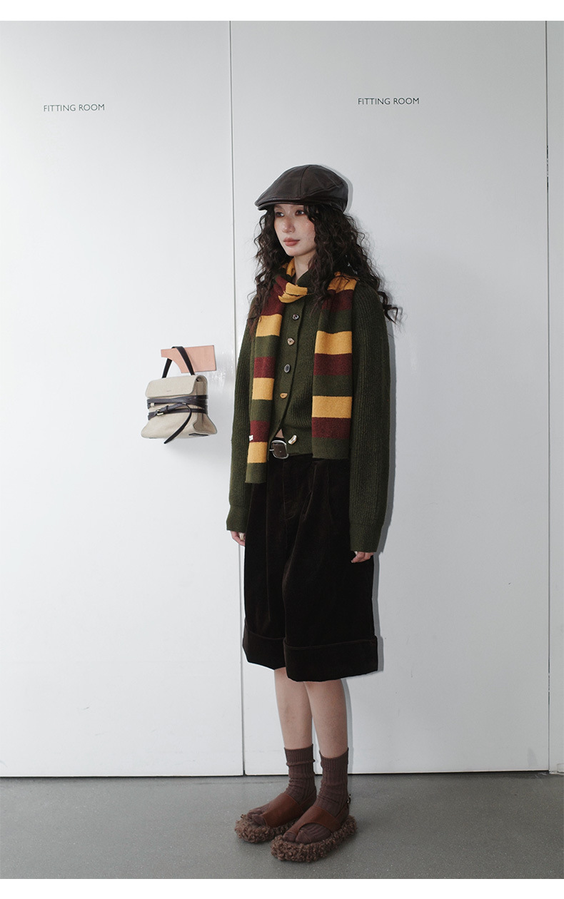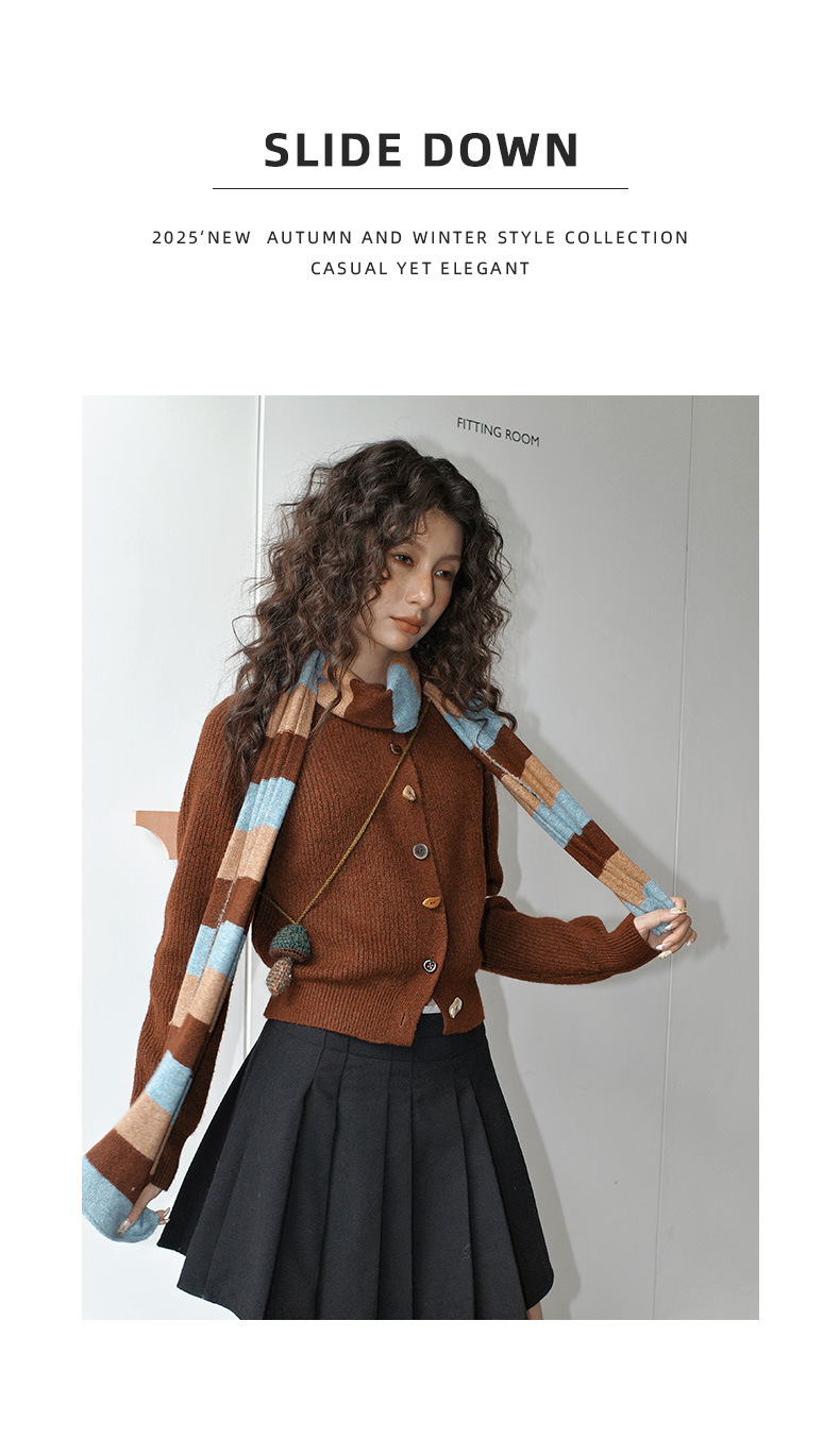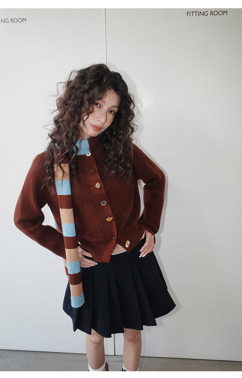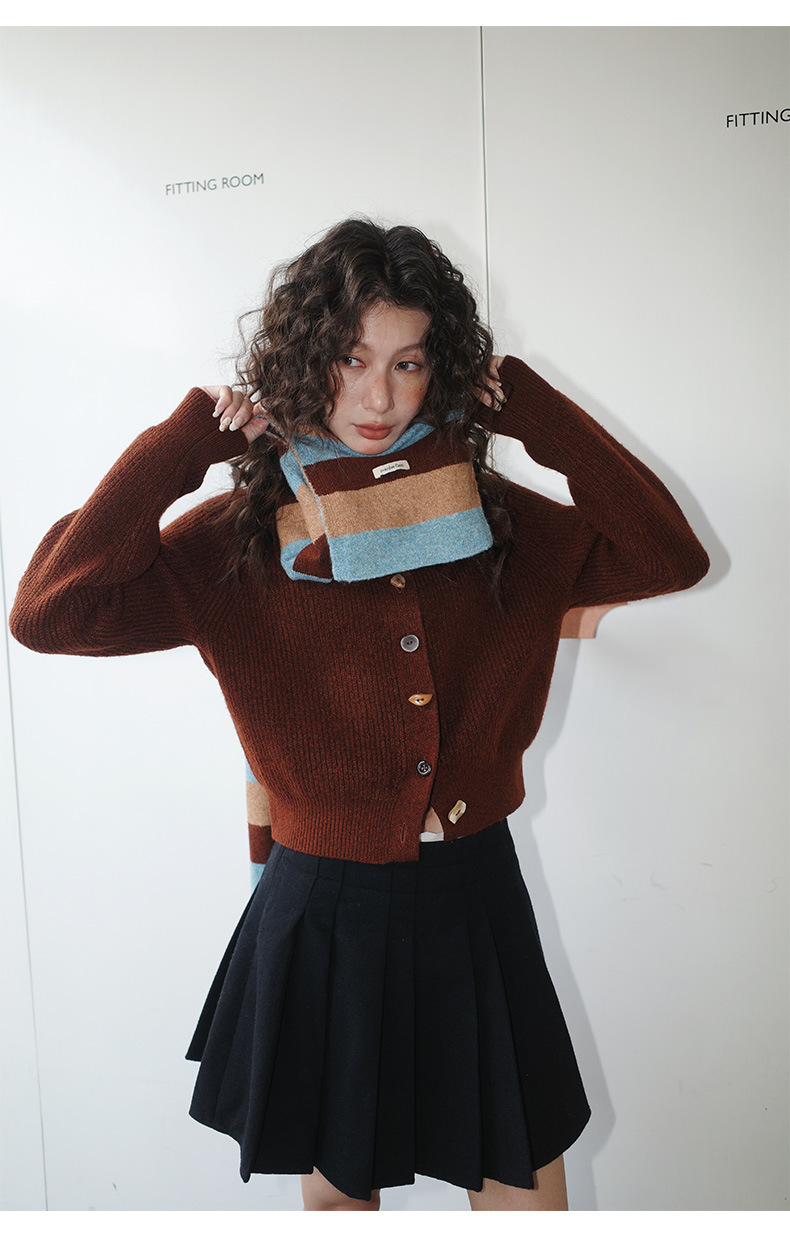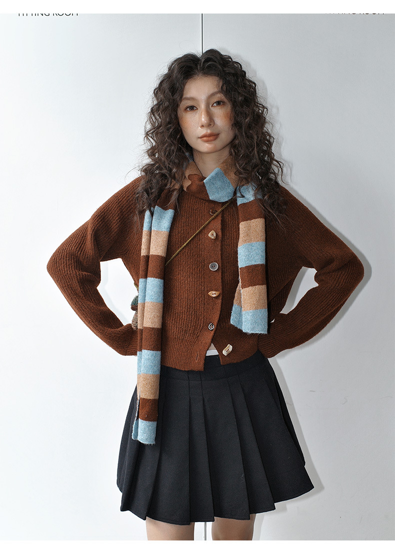 NEIHE内赫韩系穿搭女装圣诞撞色条纹围巾开衫毛衣女秋冬季257216