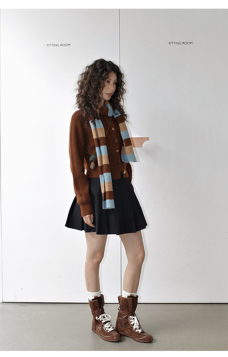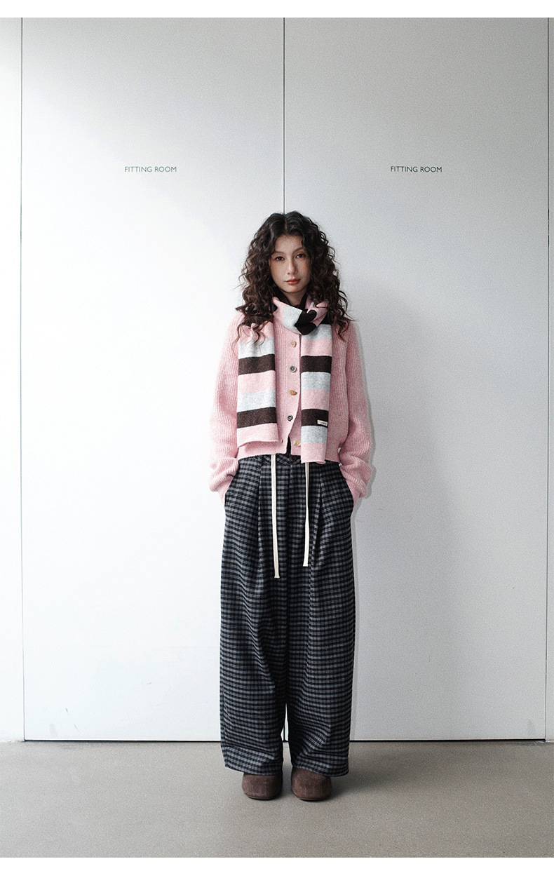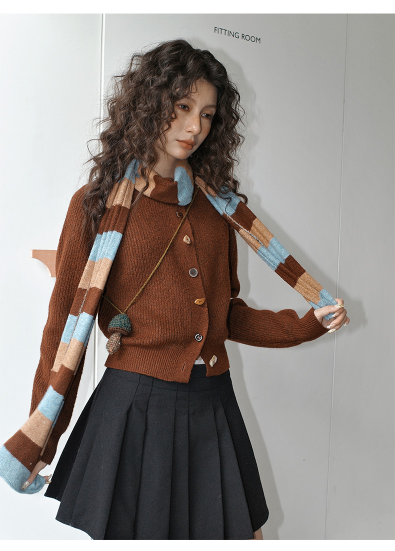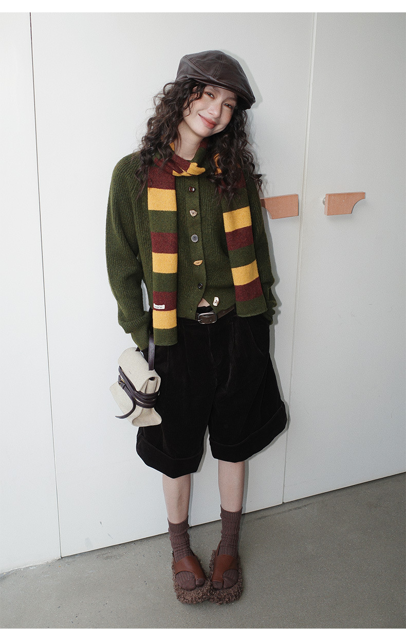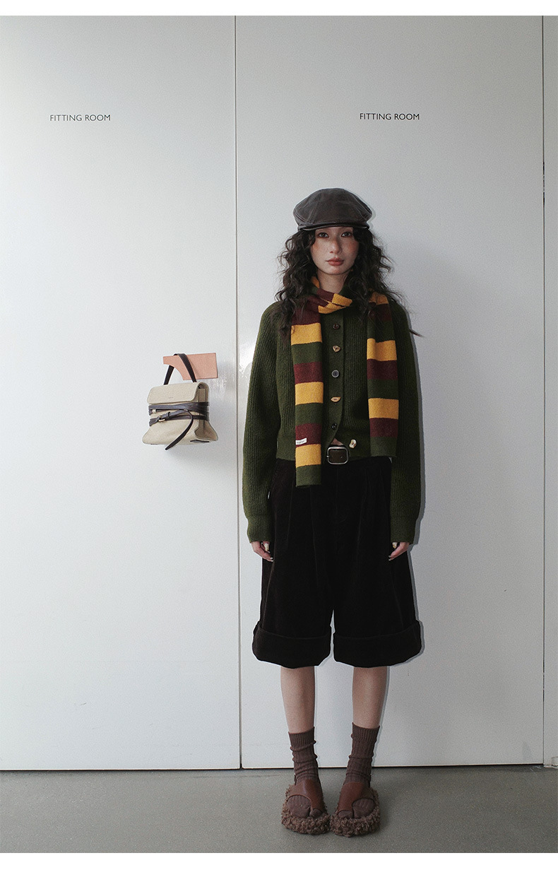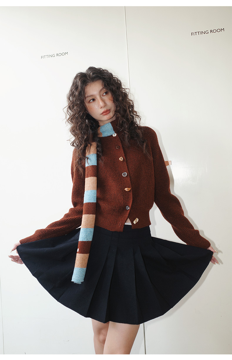 NEIHE内赫韩系穿搭女装圣诞撞色条纹围巾开衫毛衣女秋冬季257216