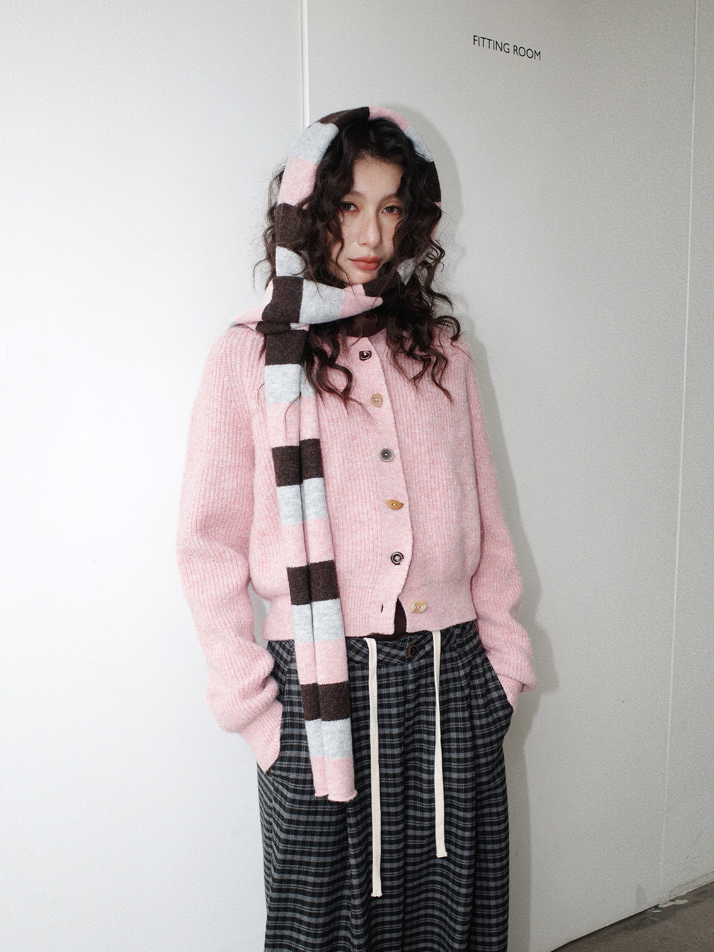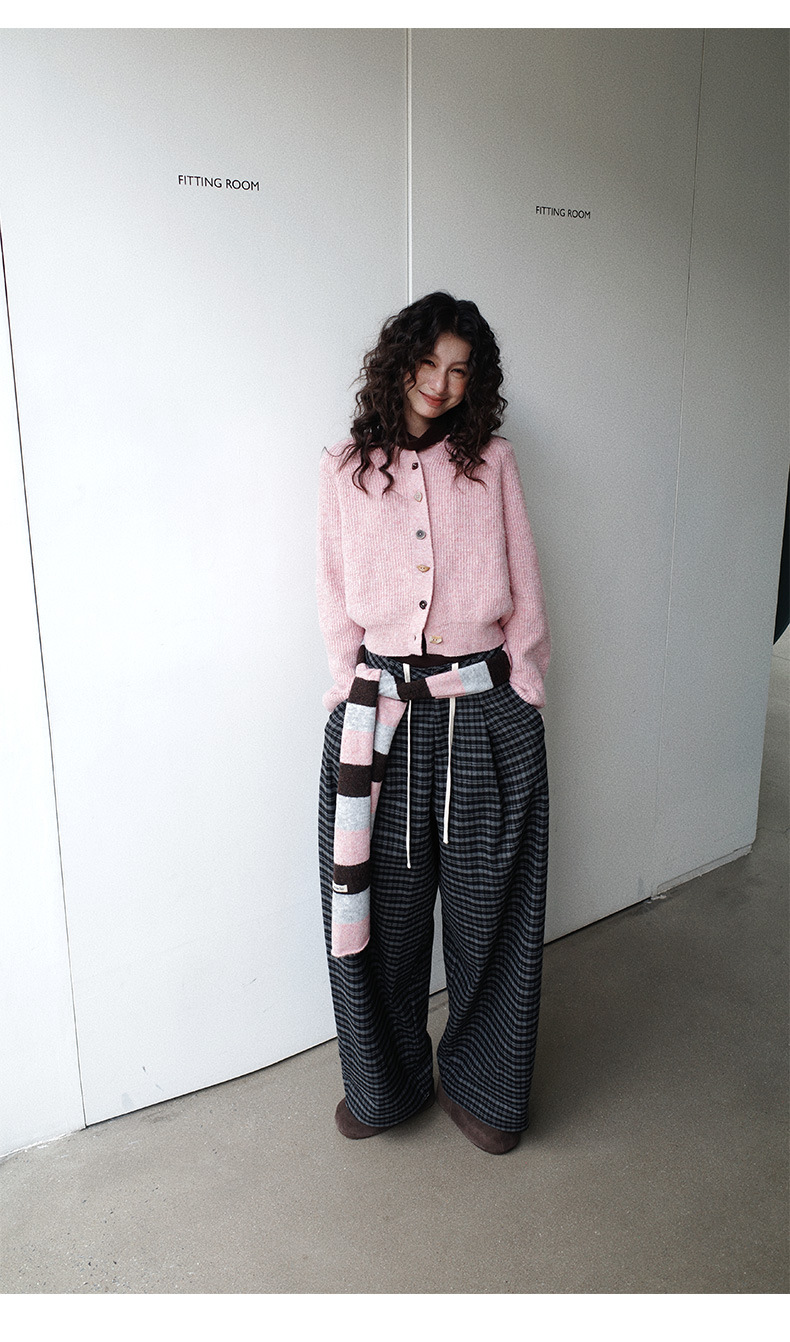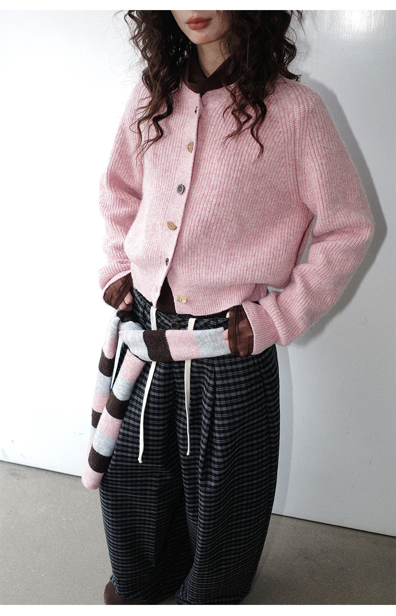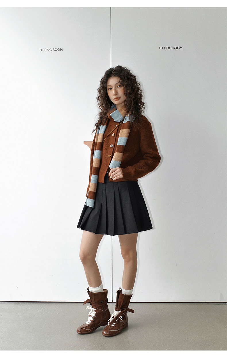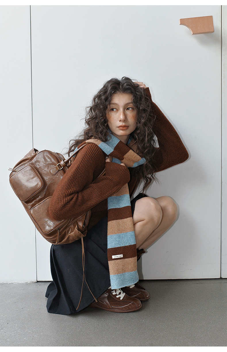NEIHE内赫韩系穿搭女装圣诞撞色条纹围巾开衫毛衣女秋冬季257216