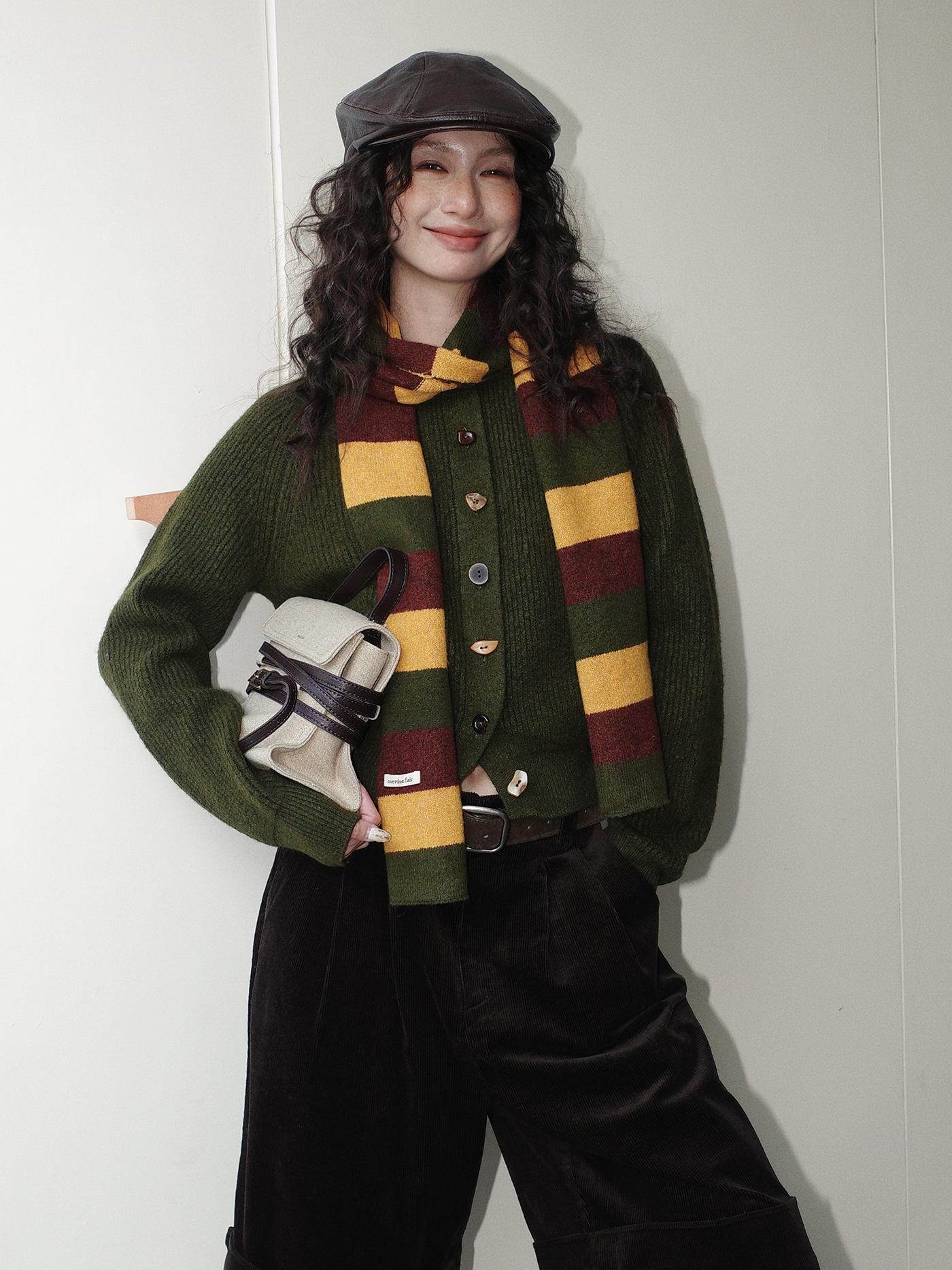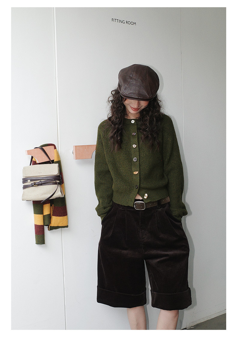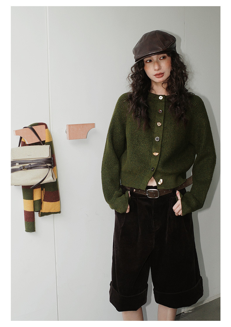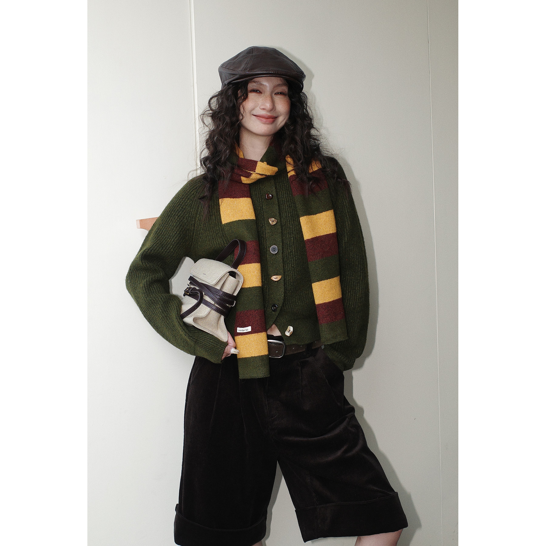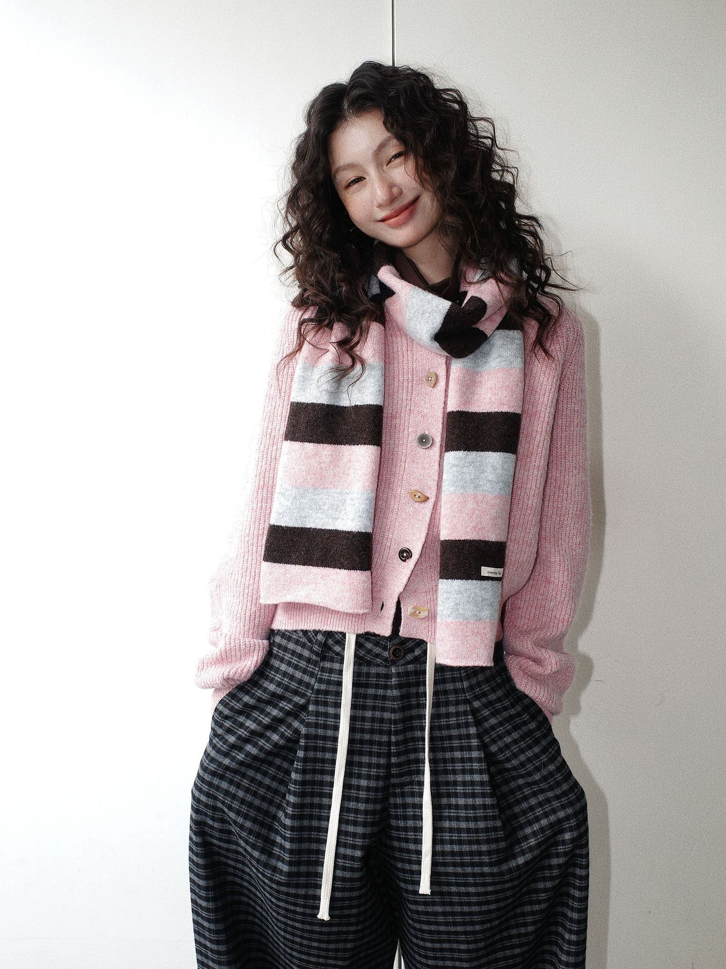 NEIHE内赫韩系穿搭女装圣诞撞色条纹围巾开衫毛衣女秋冬季257216