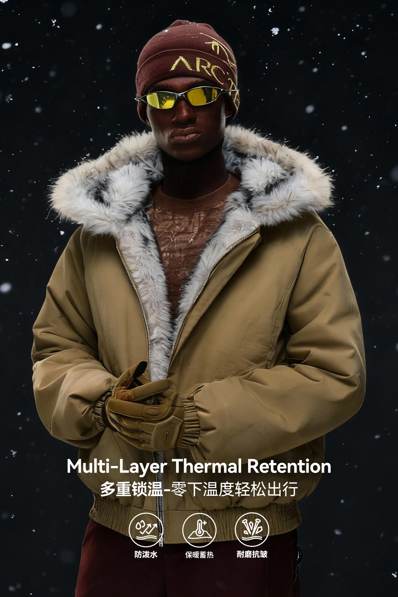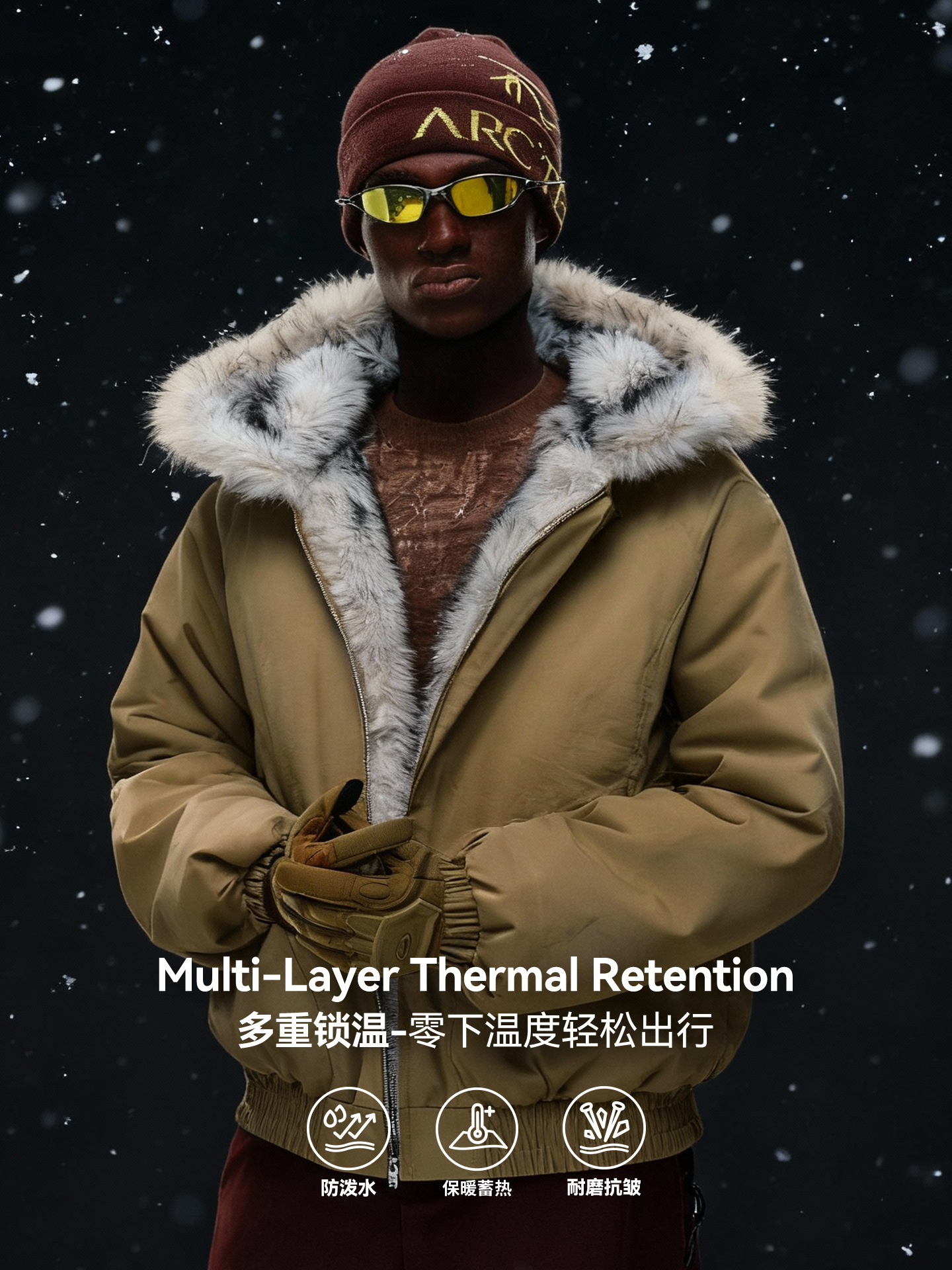 捷展男装|座山雕棉服外套25冬季新品防风防泼水连帽保暖夹克男