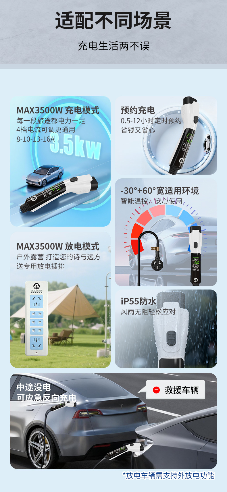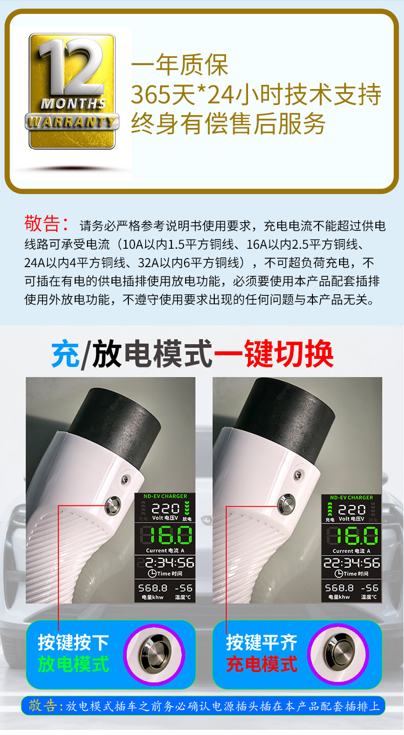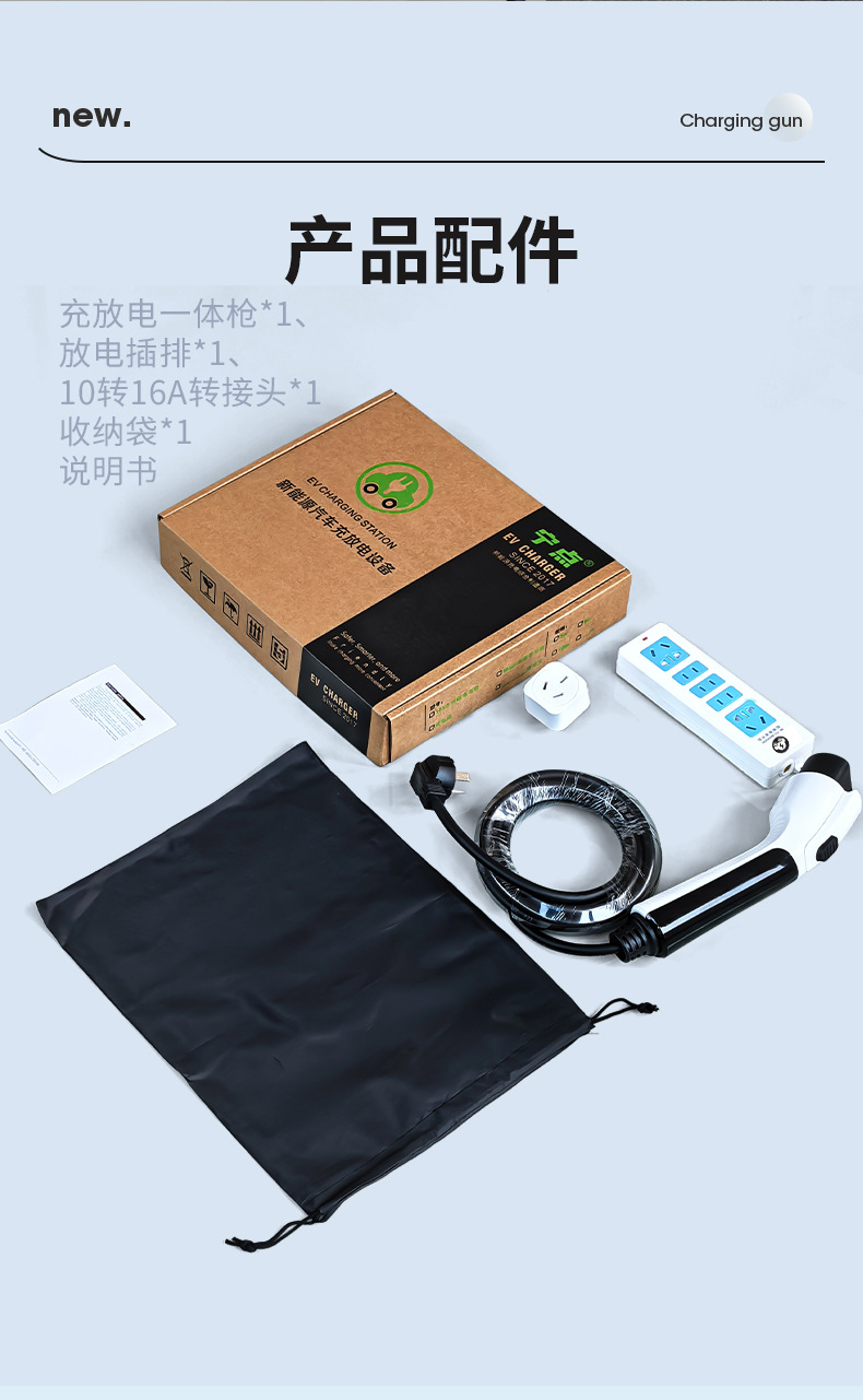 欧标EU-GBT充放电一体随车充电枪二合放电新能源汽车家用便携器桩