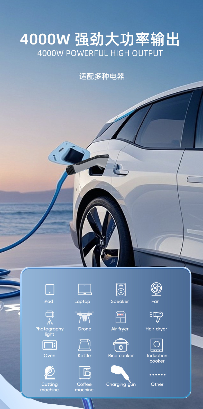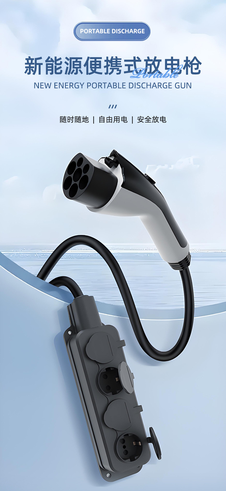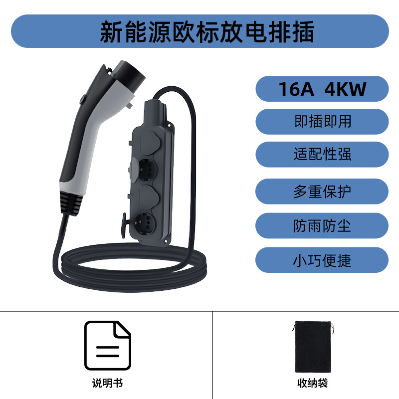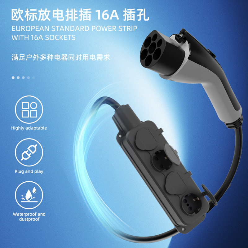 TYPE2新能源汽车放电枪欧标欧规插排v2l转换插座跨境爆款户外取电