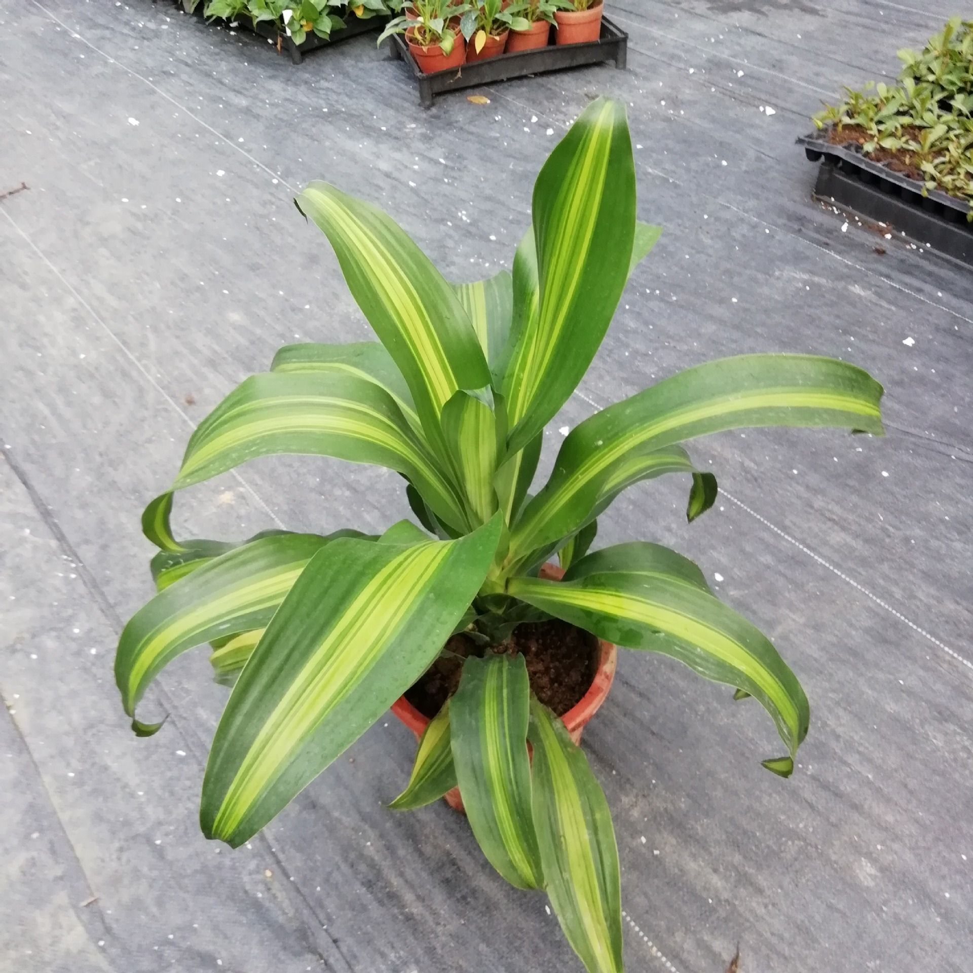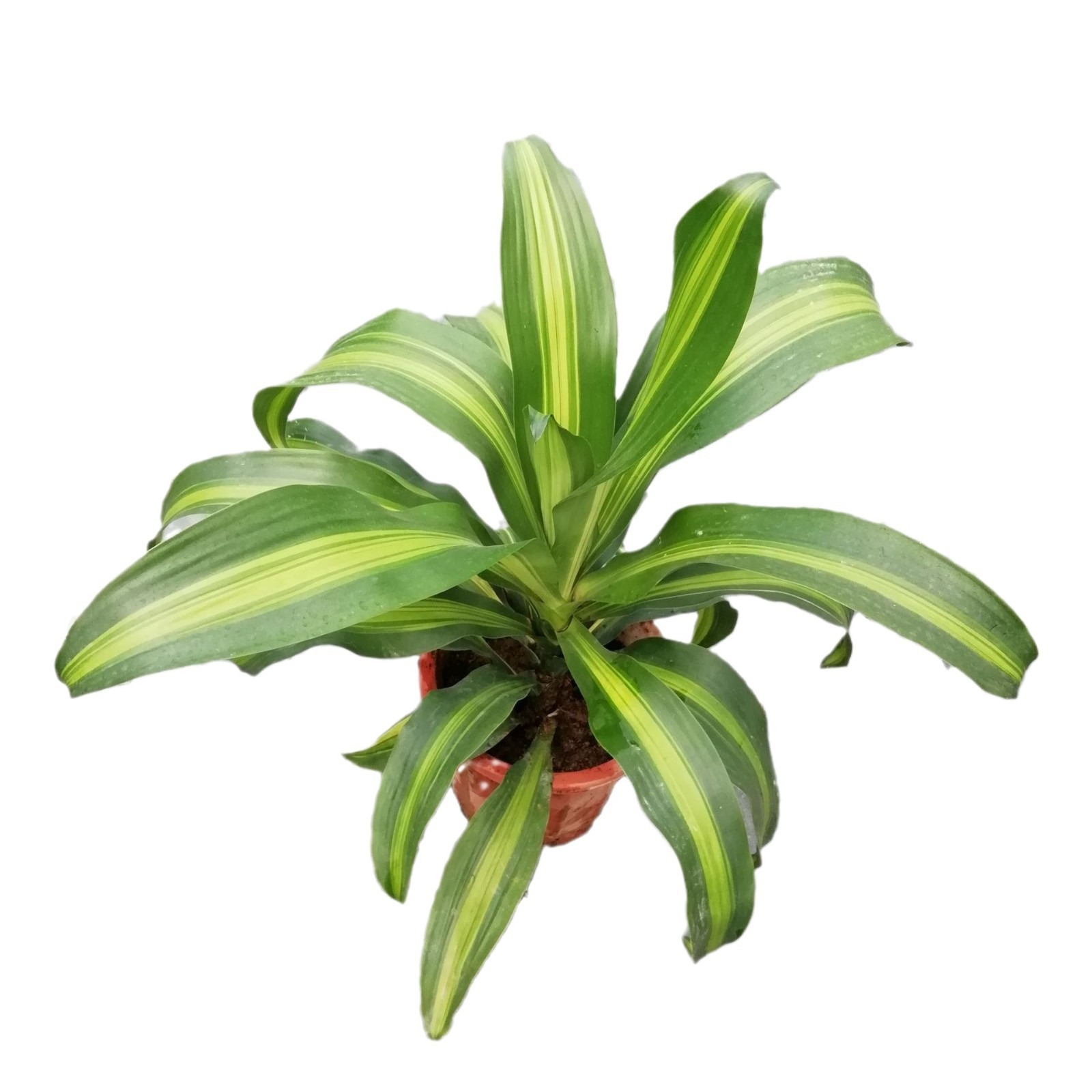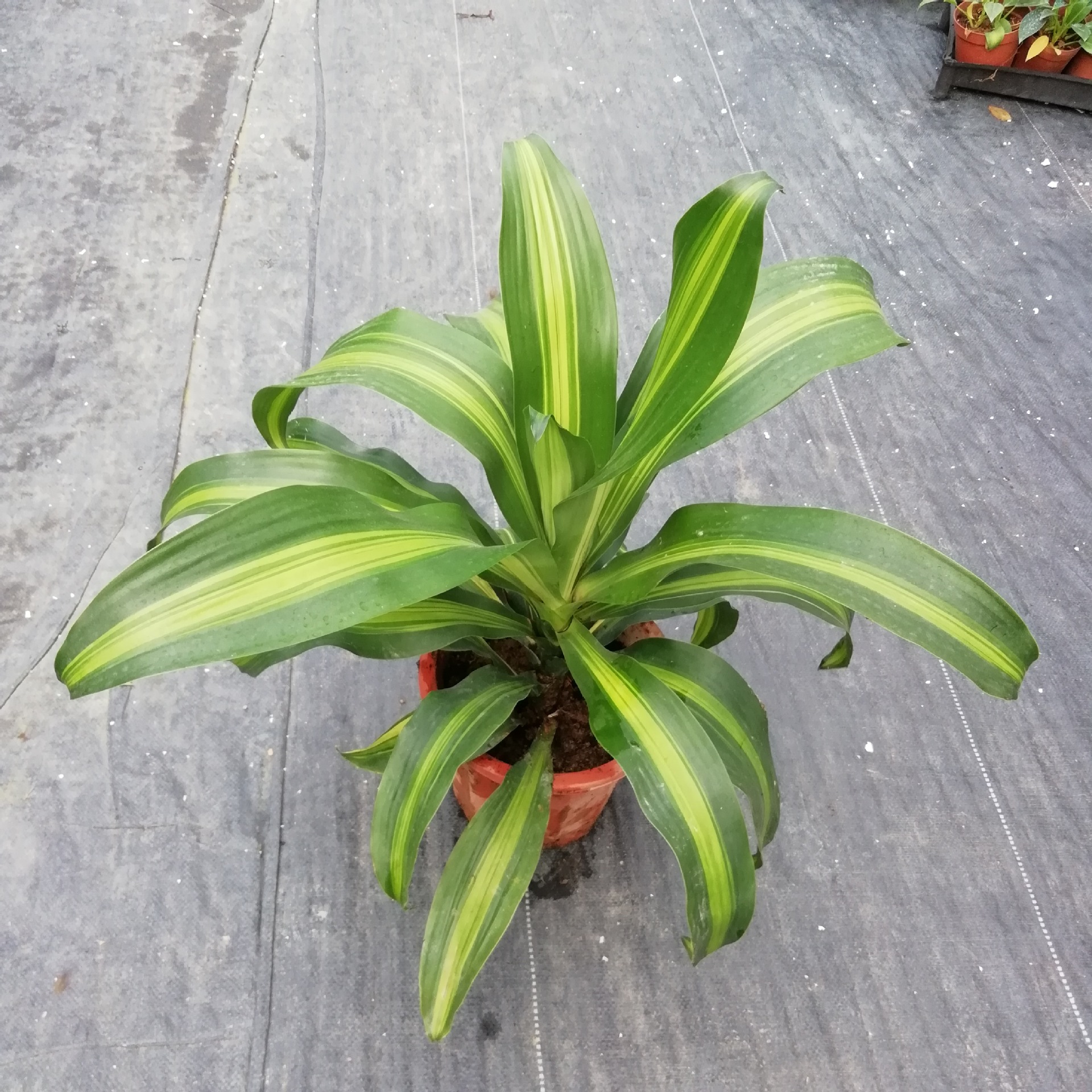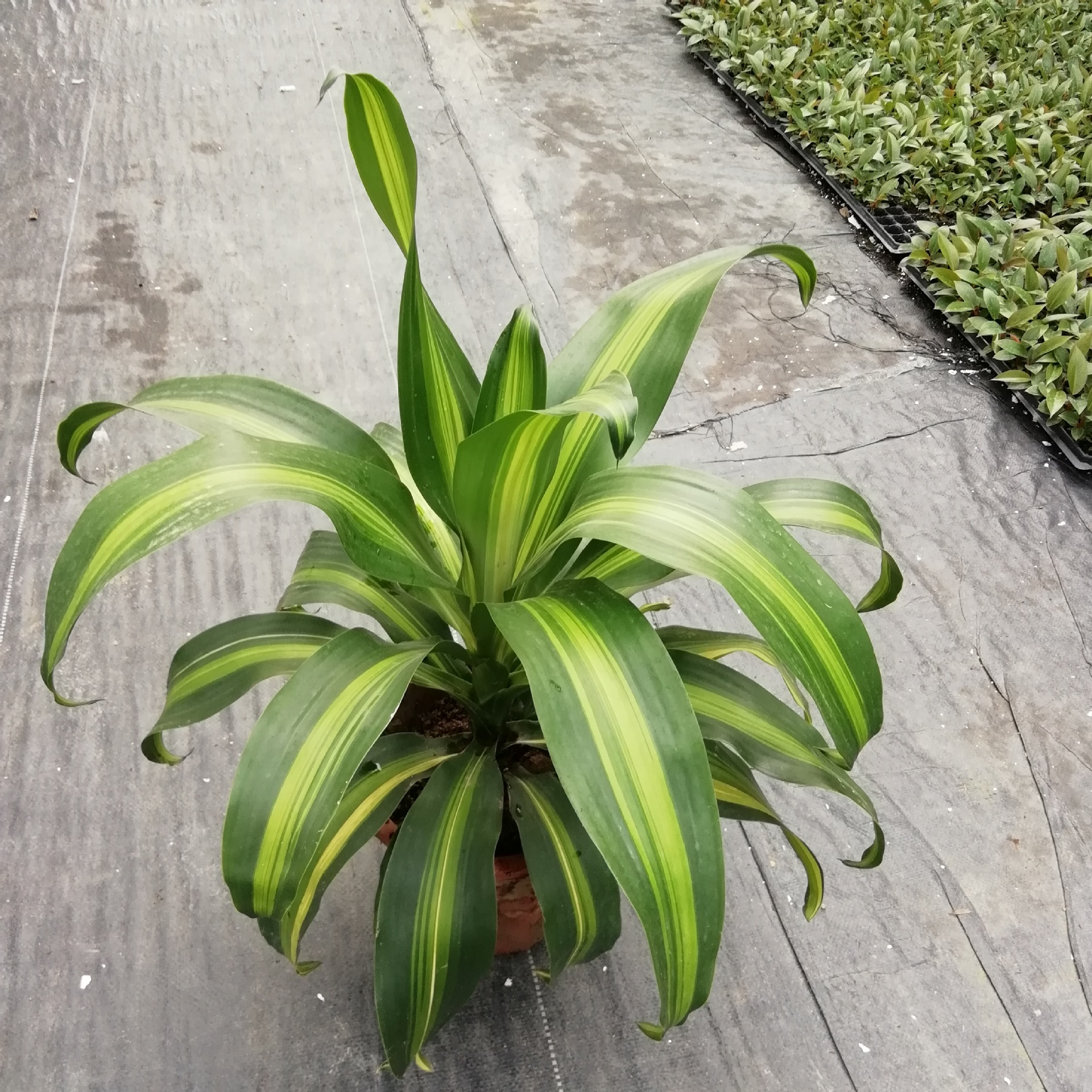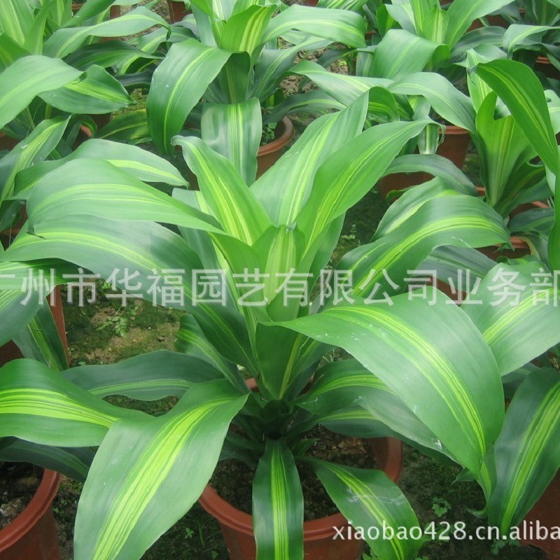 又称金心巴西铁又叫巴西千年木,是香龙血树的一个园艺变种,为百合科龙血树属植物,其宽带状时聚生茎干上部,叶片中央有一金黄色宽条纹,两边绿色,是一种优良的双叶植物。性喜高温高湿通风良好环境,适宜生长温度为20-30℃,较喜光也耐阴,怕烈日,忌干燥干旱,喜疏松排水良好的砂质土。置于室内光线一般处可摆6个月至2年,能够有效吸附室内的甲醛、苯等有害气体。是室内绿色植物中最为耐荫的一类观赏植物。