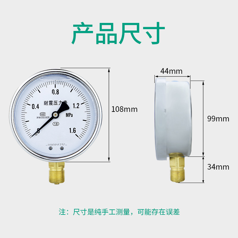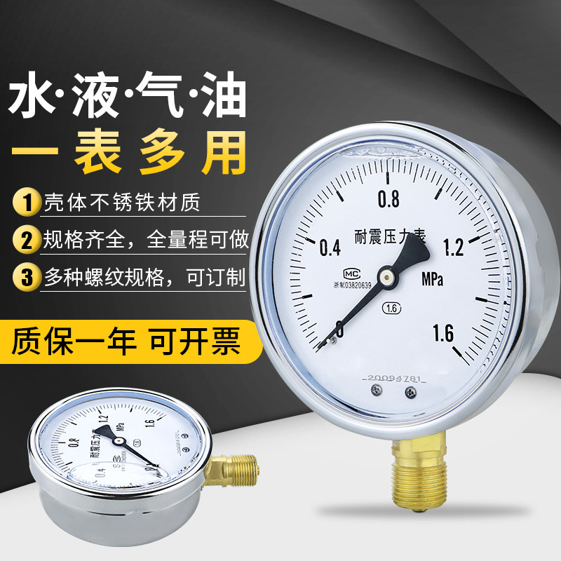 Сейсмический манометр YN100 сейсмическое давление масла гидравлический манометр вакуумное отрицательное давление 4 точки 1/2 М20*1,5