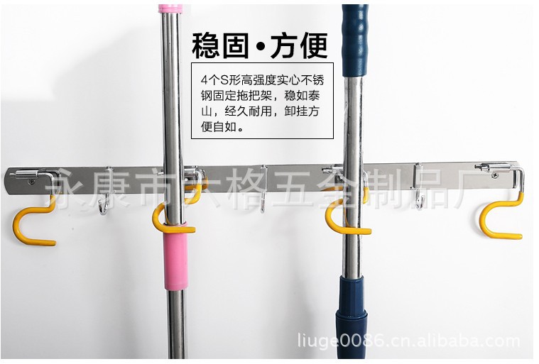 一次按压,直接将拖把牢牢固定在拖把架上,大大节省了空间