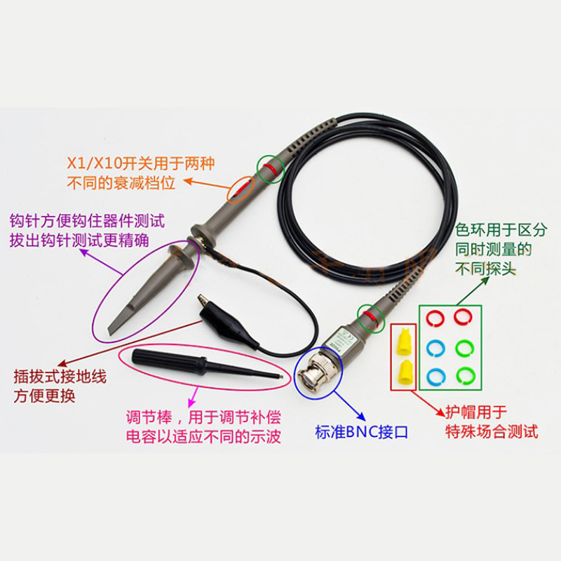 Зонд серии P6000 x1 ~ x10 зонд осциллографа 20 МГц-100 МГц затухание 100-кратный зонд осциллографа