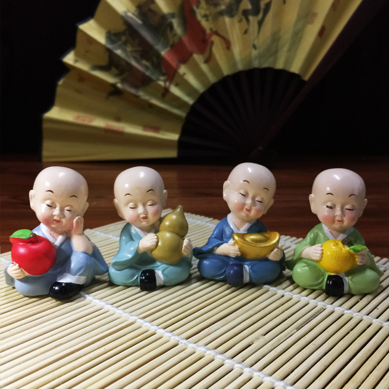 Четыре маленьких монаха автомобиль смолы украшения дома ремесла подарок выпечки цветок украшения