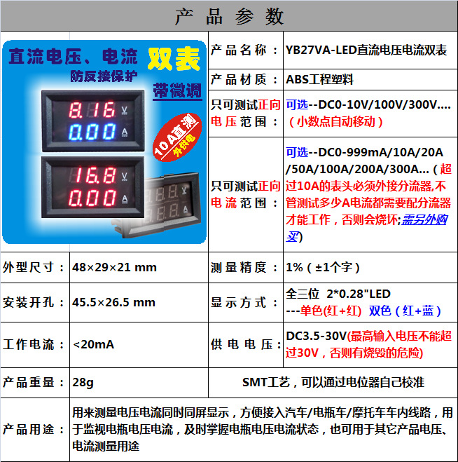 DC0-300V 0-200 В постоянного тока двойной дисплей цифровой вольтметр Амперметр Головка Цифровой дисплей двойной метр стекловолокно 50A