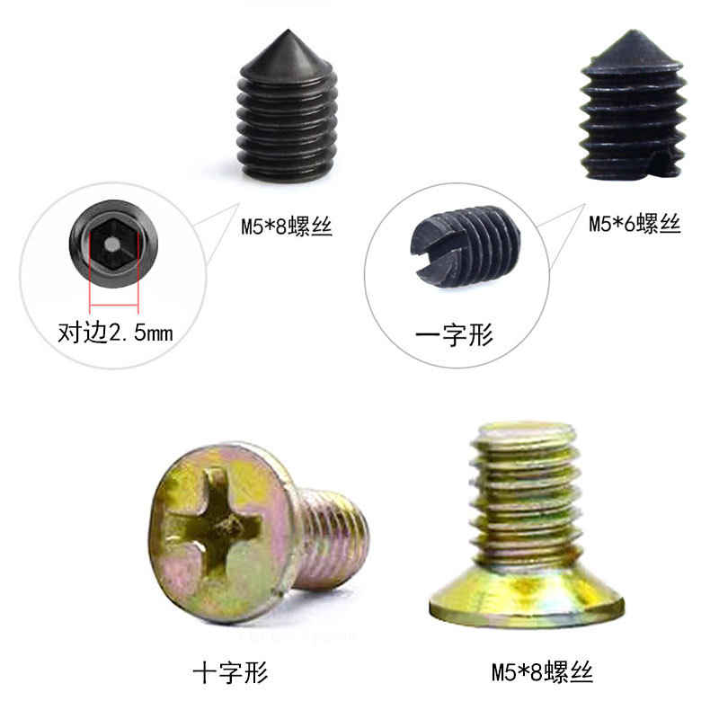 Винт с плоской головкой*1; [Короткий стиль] Закругленный винт*1; Шестигранный винт*1; 1 шестигранный ключ на 2,5 мм.; 1 красная и синяя отметка