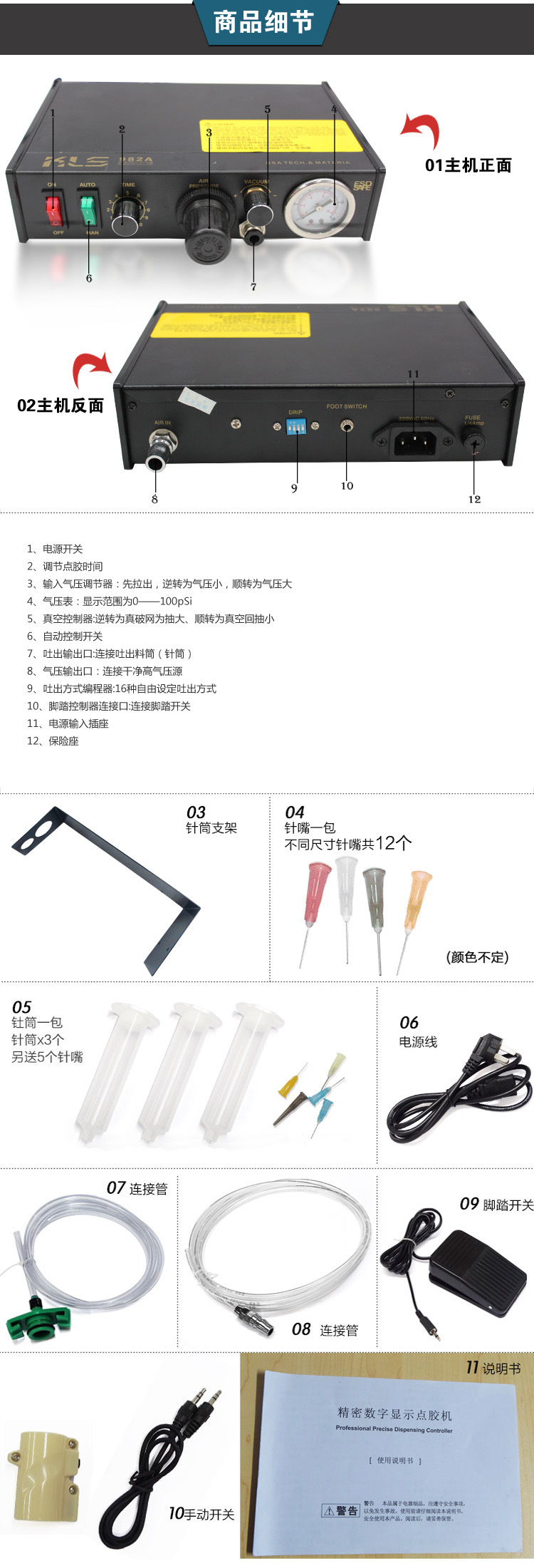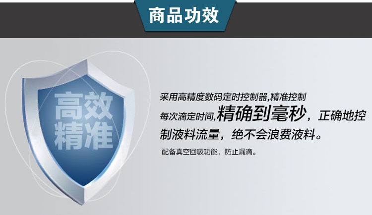 ●真空回吸功能:可调节负压控制至600毫米汞柱