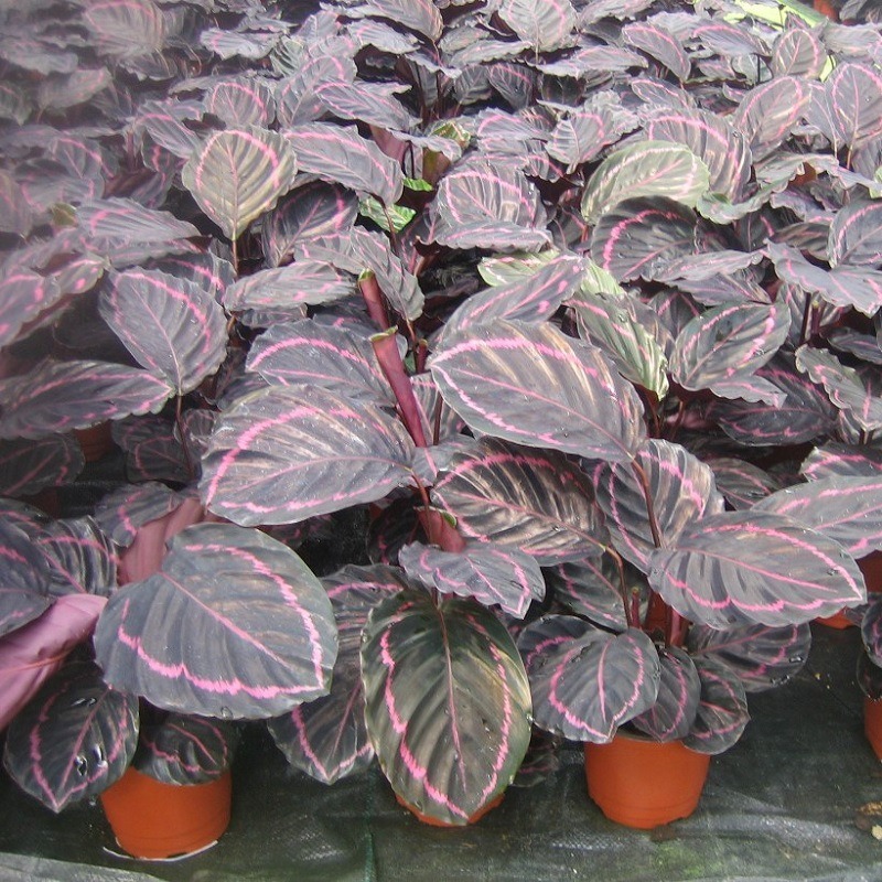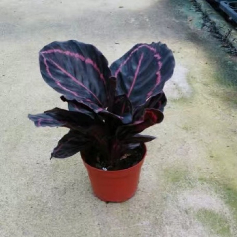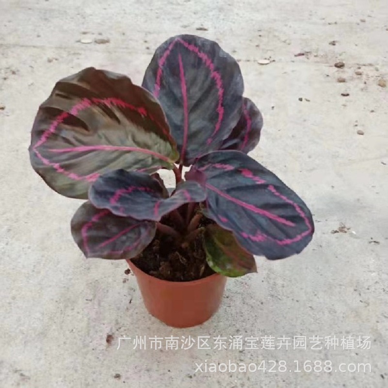 原产巴西,本属植物分布于南美至中美的热带美洲地区,系从彩虹竹芋中分出来的新品.中呈长圆形,红色,纹理比较清晰.多年生草本,叶自根际丛生,叶柄直立;叶阔歪卵形,叶缘波大波小褶皱,叶表浓褐色,叶面有椭圆形深红色,叶背及叶柄红褐色。