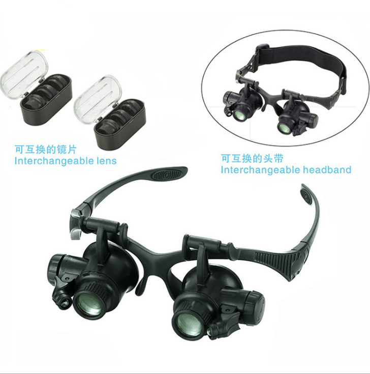 Светодиодная лампа шлем печатная плата часы Ремонт инструмента 4 вида увеличения наголовное увеличительное стекло в твердом переплете 9892G