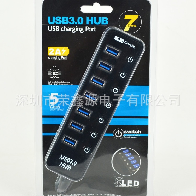 产品功能:扩展7口USB3.0接口、一个快速充电接口