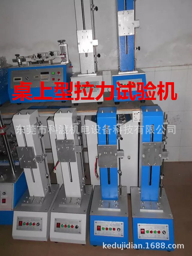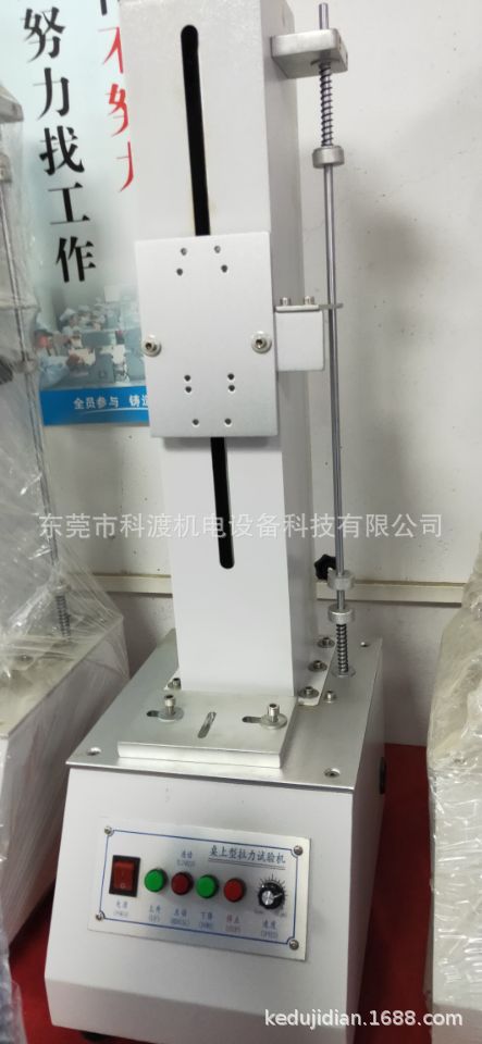 本機為桌上型電動式拉力試機,以馬達傳動裝置帶動軸承絲杆上升或下降,外觀精緻,結構,試件經拉伸後,可由拉力計讀出拉力值,求得試件之抗拉強度。