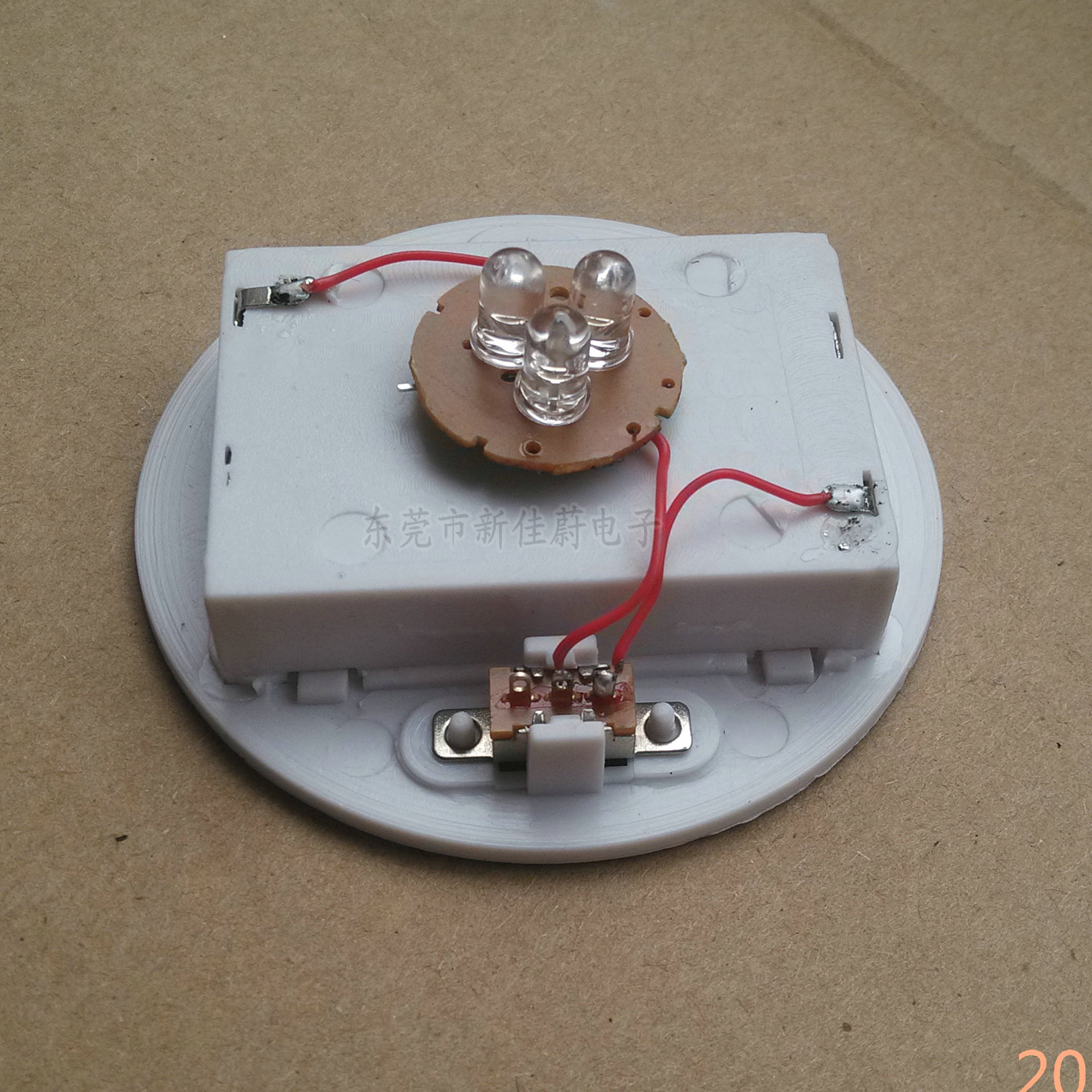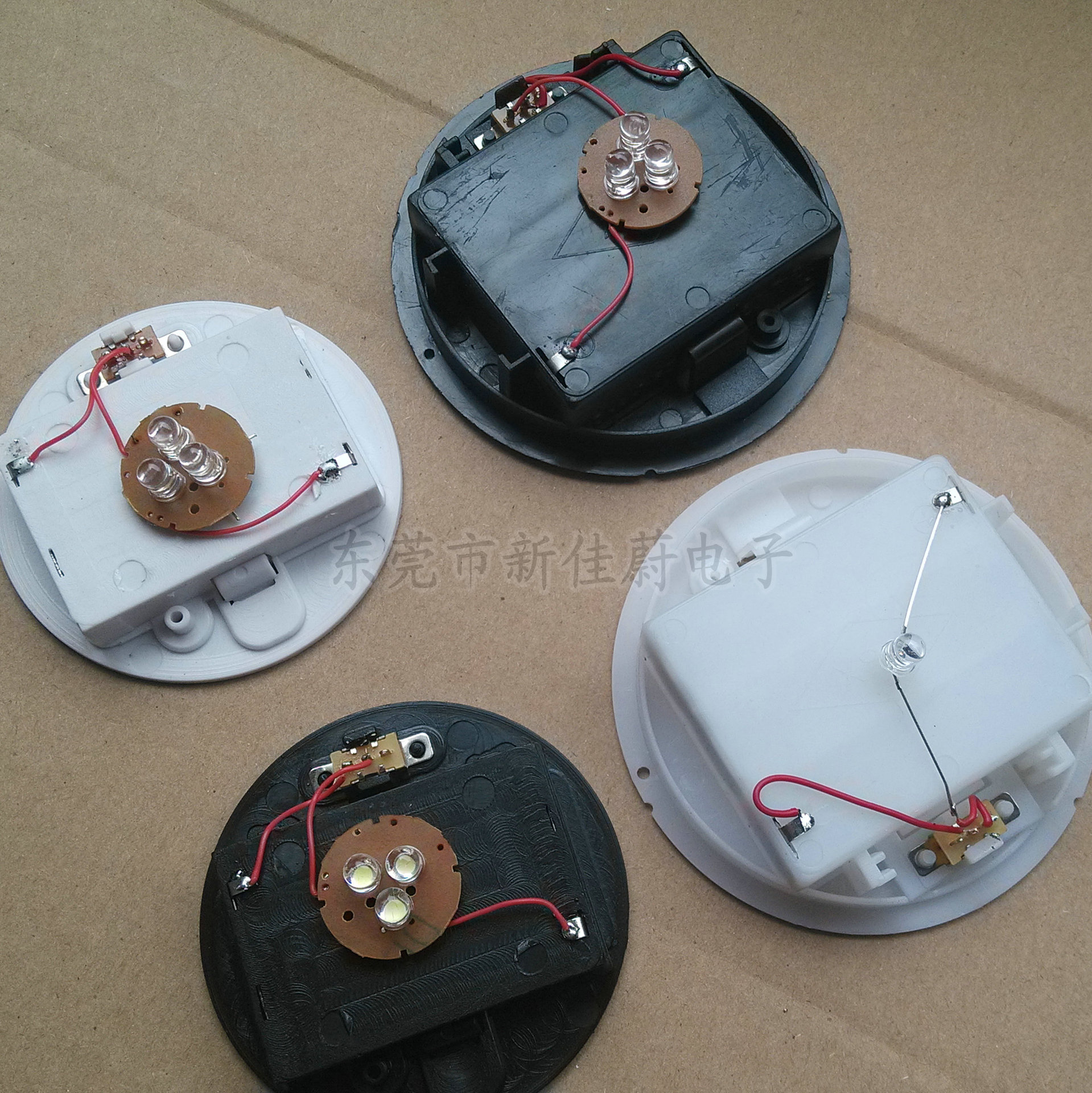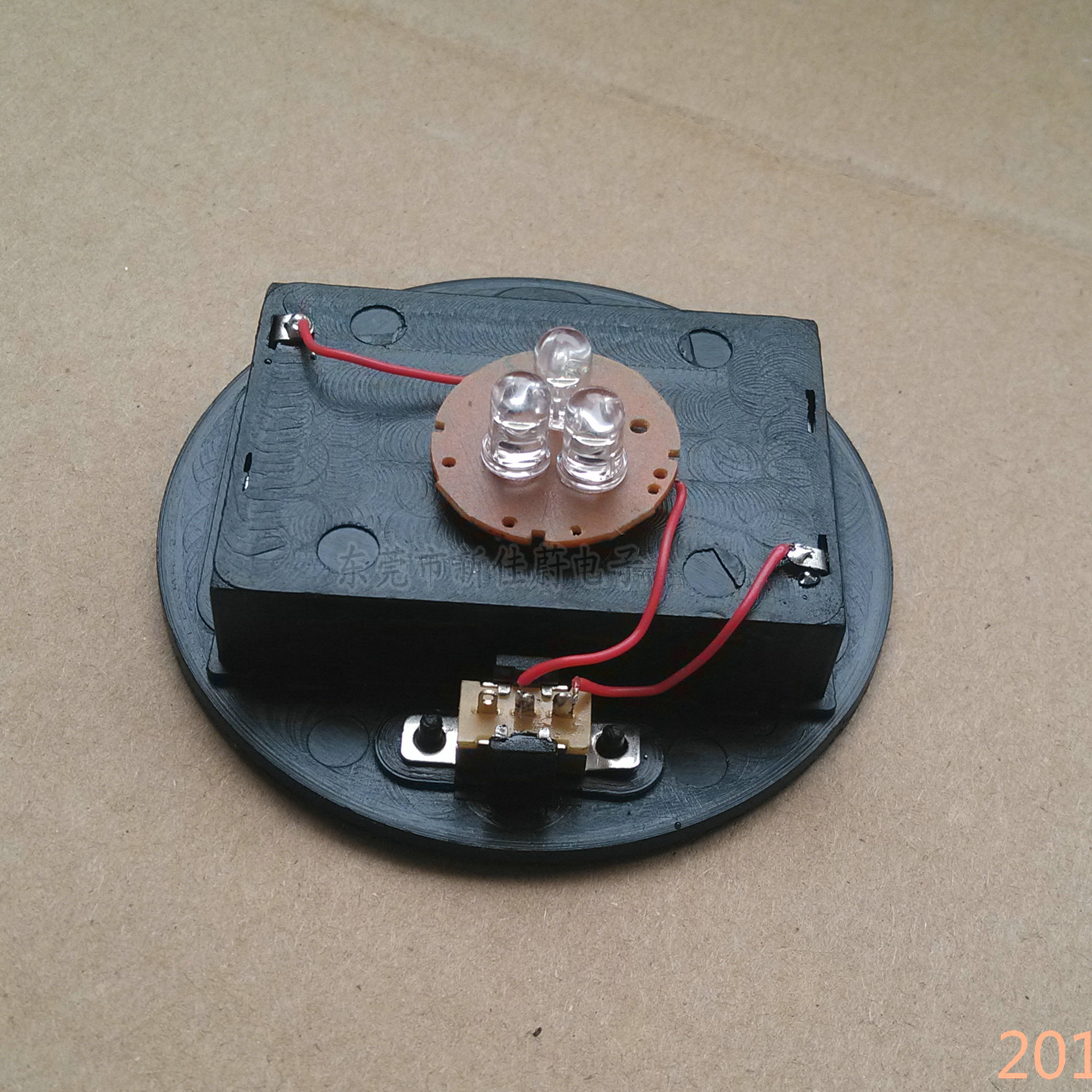 产品尺寸为直径38MM,高度15MM(不含LED),可装AG13电池3颗 。