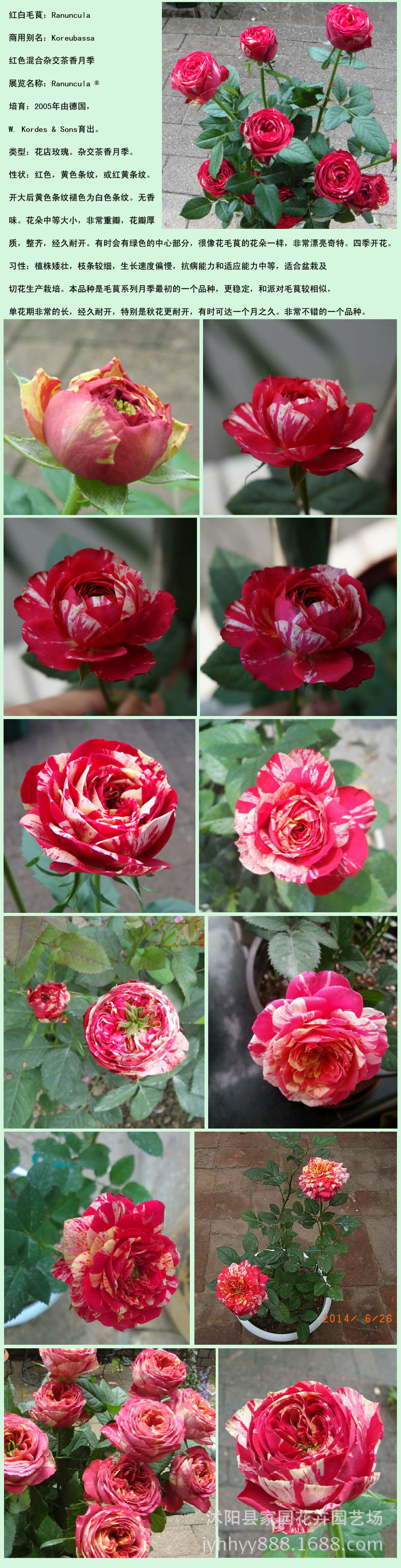 Европейская роза-ранункулюс, красно-белый шиповник, сорт для четырех сезонов, рассада роз в горшках