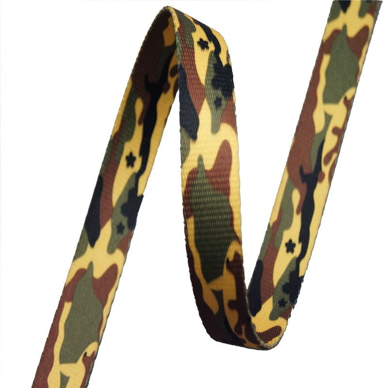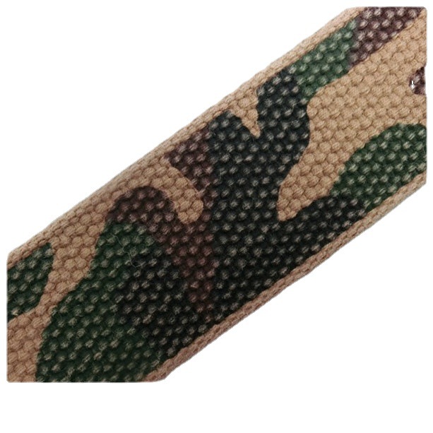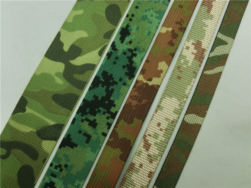 迷彩织带用途广泛,常见于服装、鞋帽、军用的各种配件,如头盔,背包,帐篷,水壶,枪支等军用生活品及设备的各种背带等等。