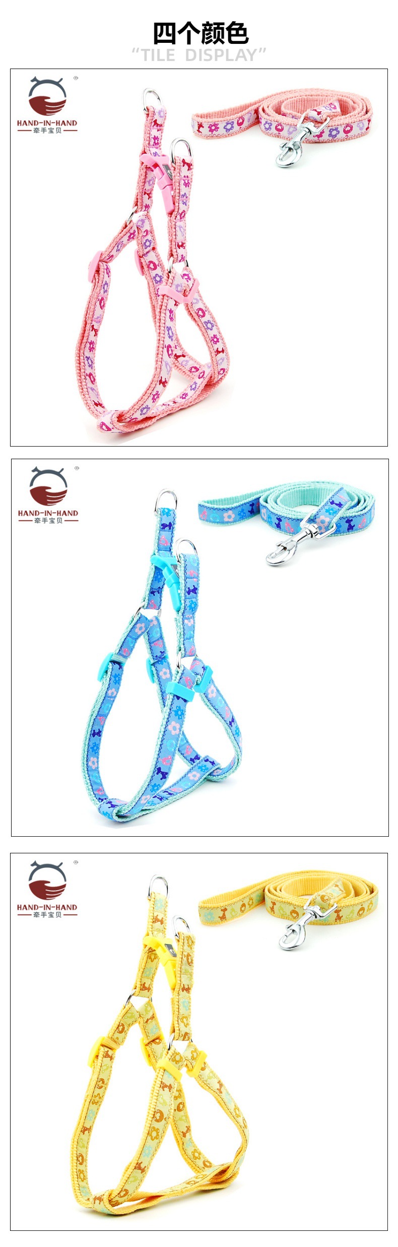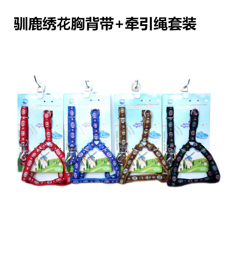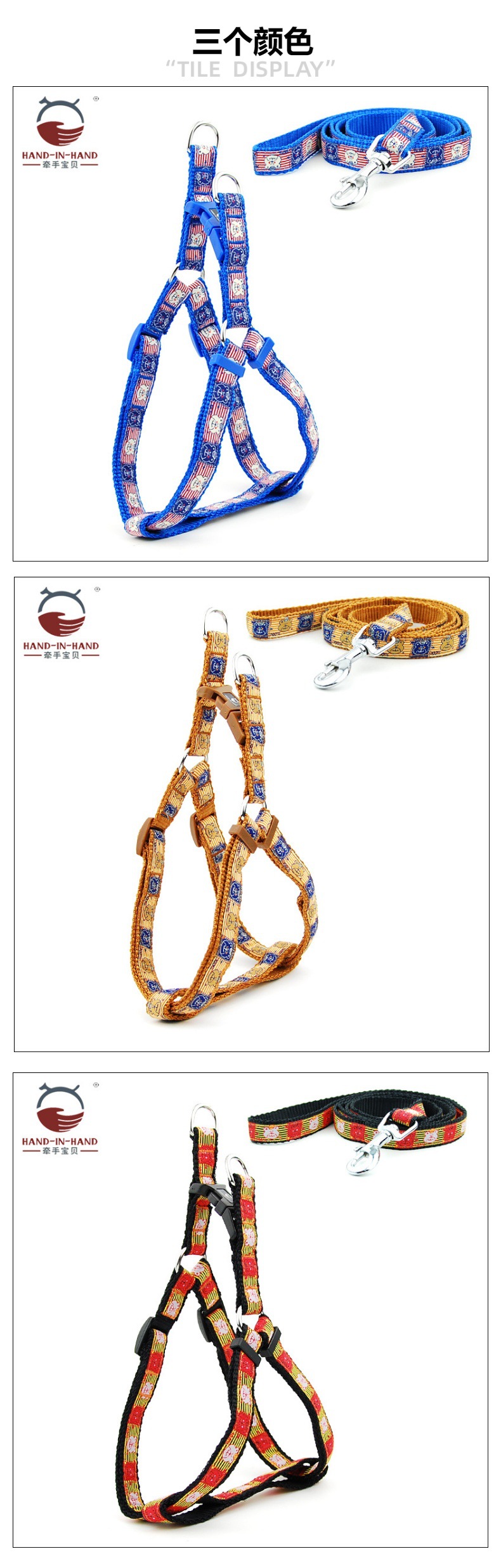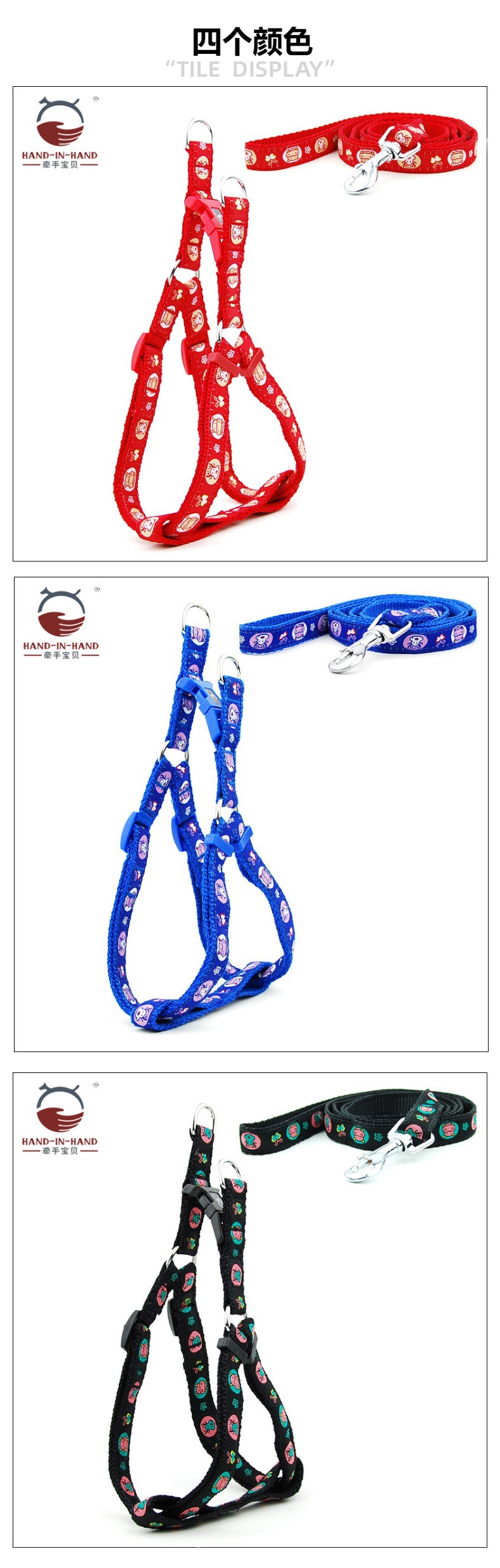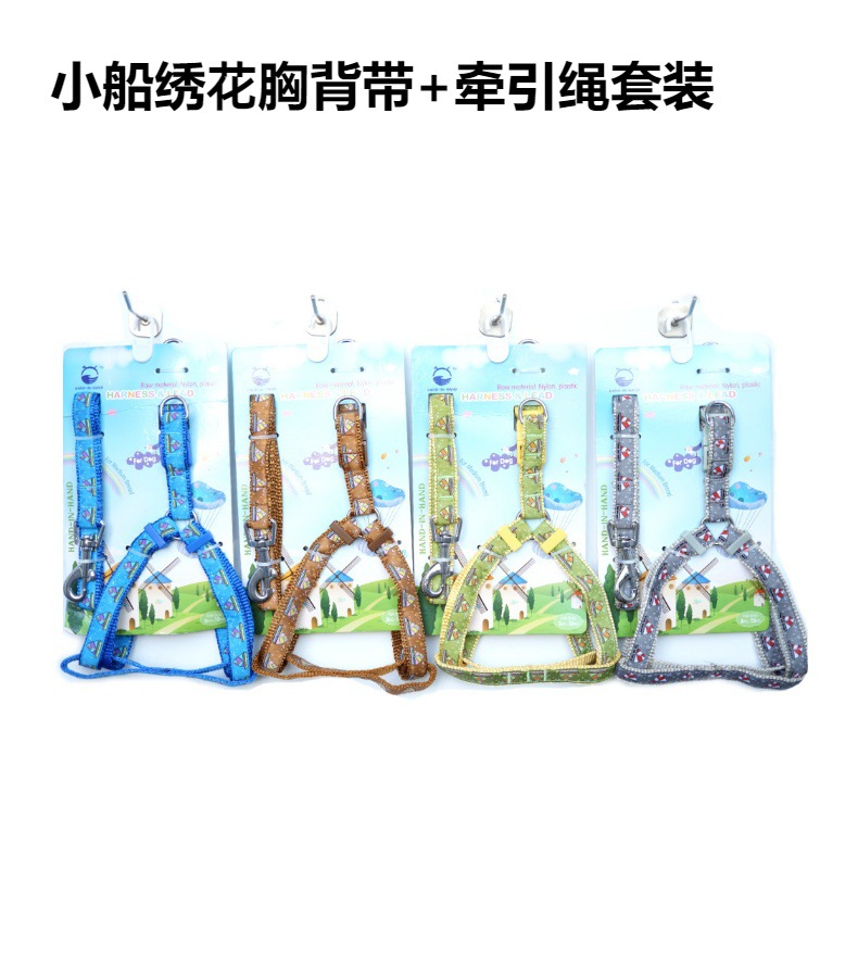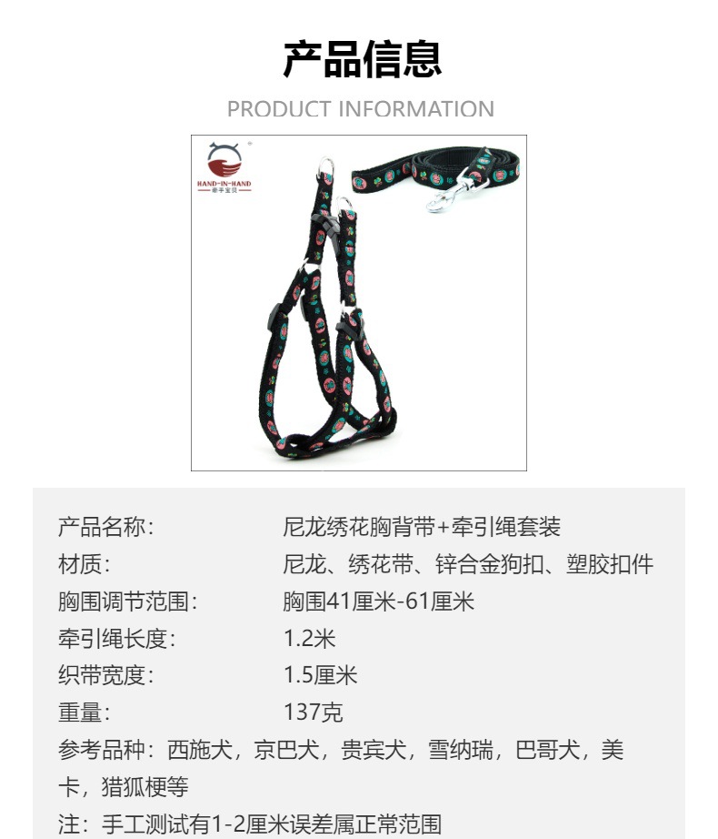 牵手宝贝HAND-IN-HAND作尼龙绣花胸背带+牵引绳套装