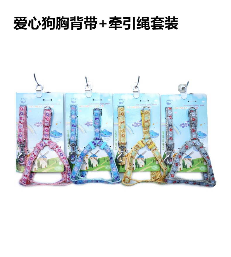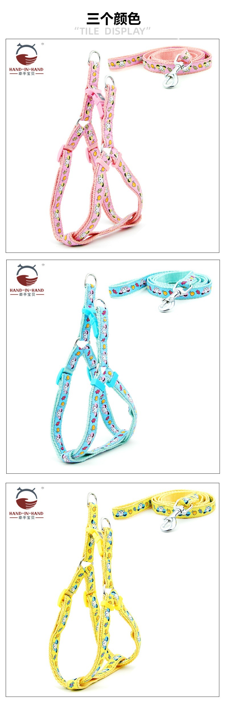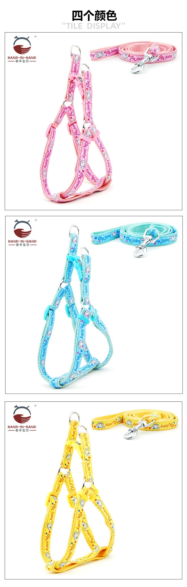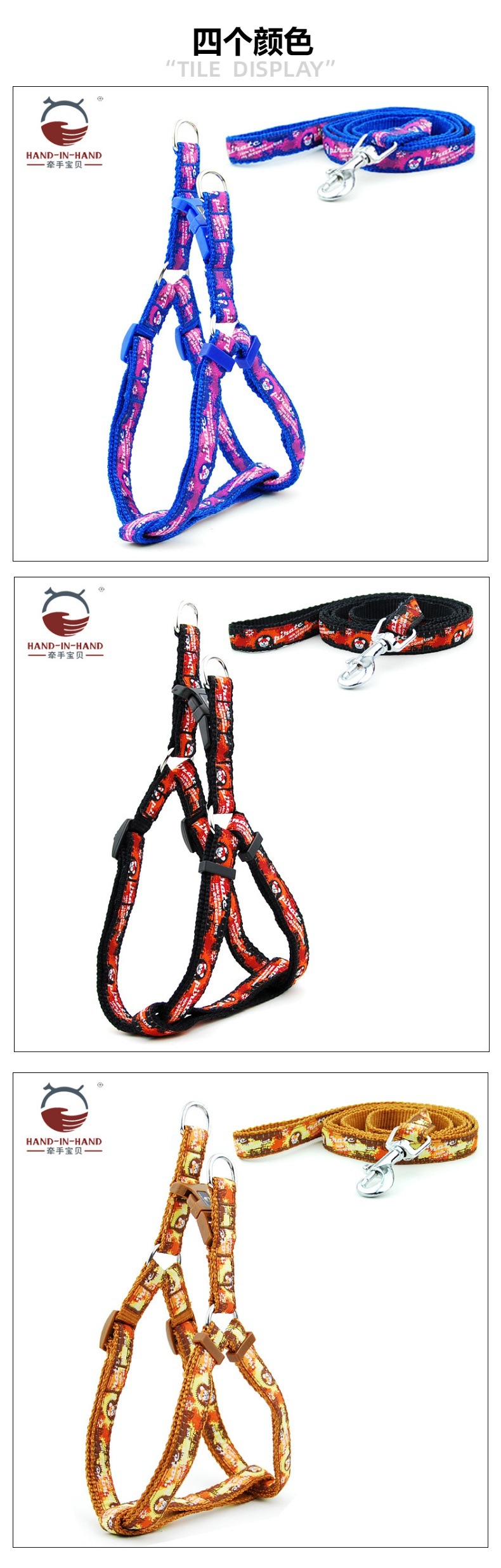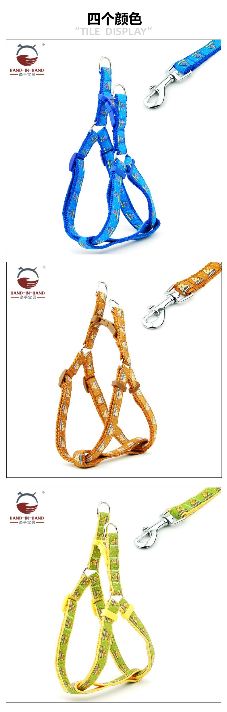 牵手宝贝HAND-IN-HAND作尼龙绣花胸背带+牵引绳套装