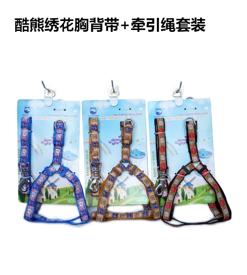 Ручной детский нейлоновый поводок с вышивкой для домашних животных, кошек, собак, нагрудный ремень, поводок для собак, товары для собак, средний размер