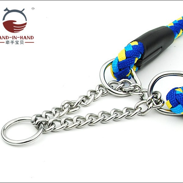Поводок-цепь для собак из плетеной веревки, полукольцевой, с регулировкой, быстросъемный, прочный, для средних и крупных собак