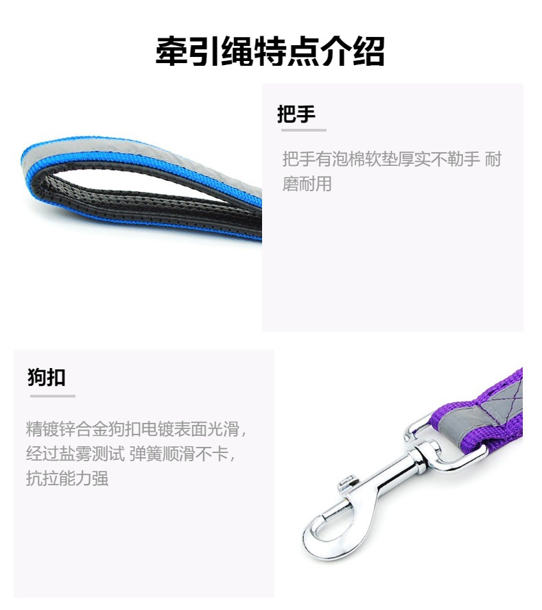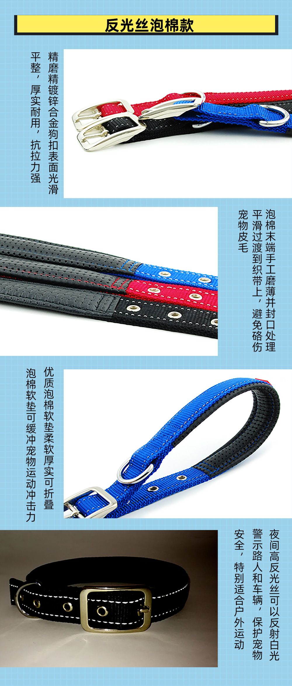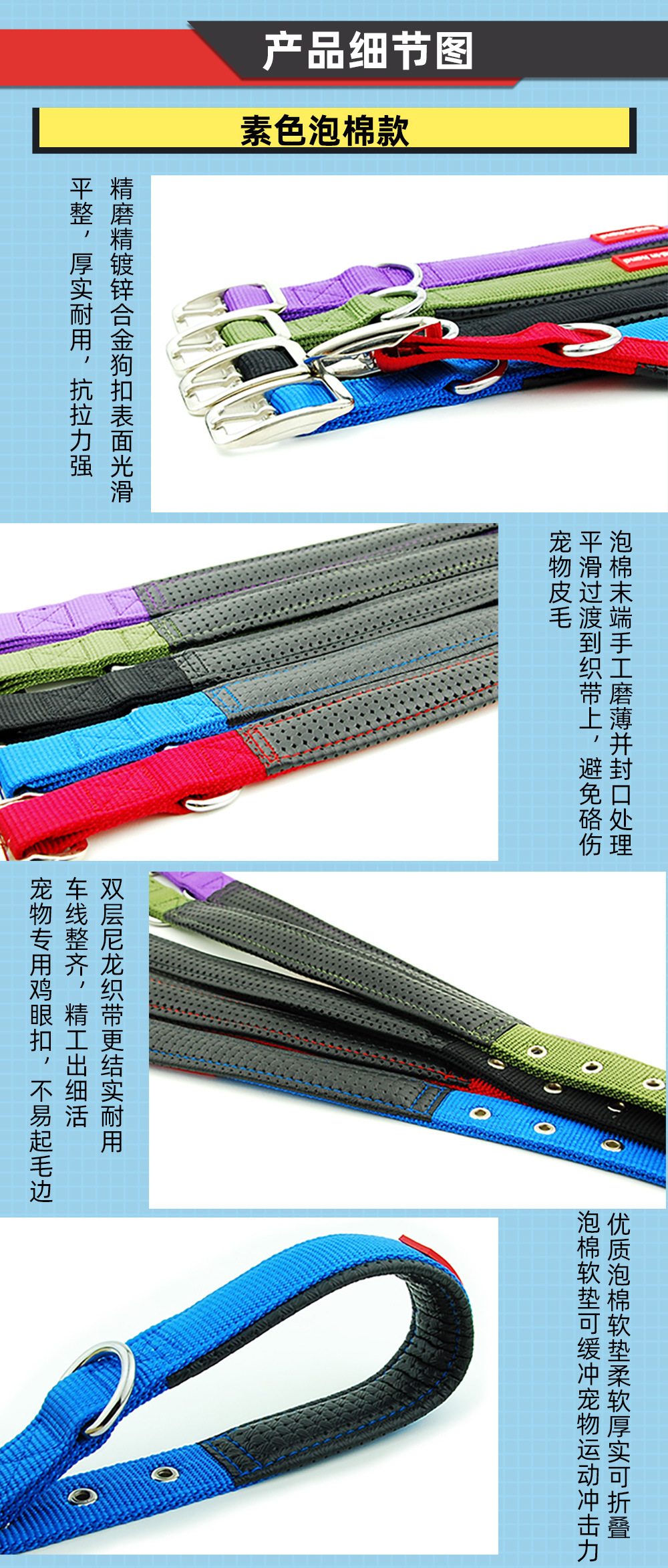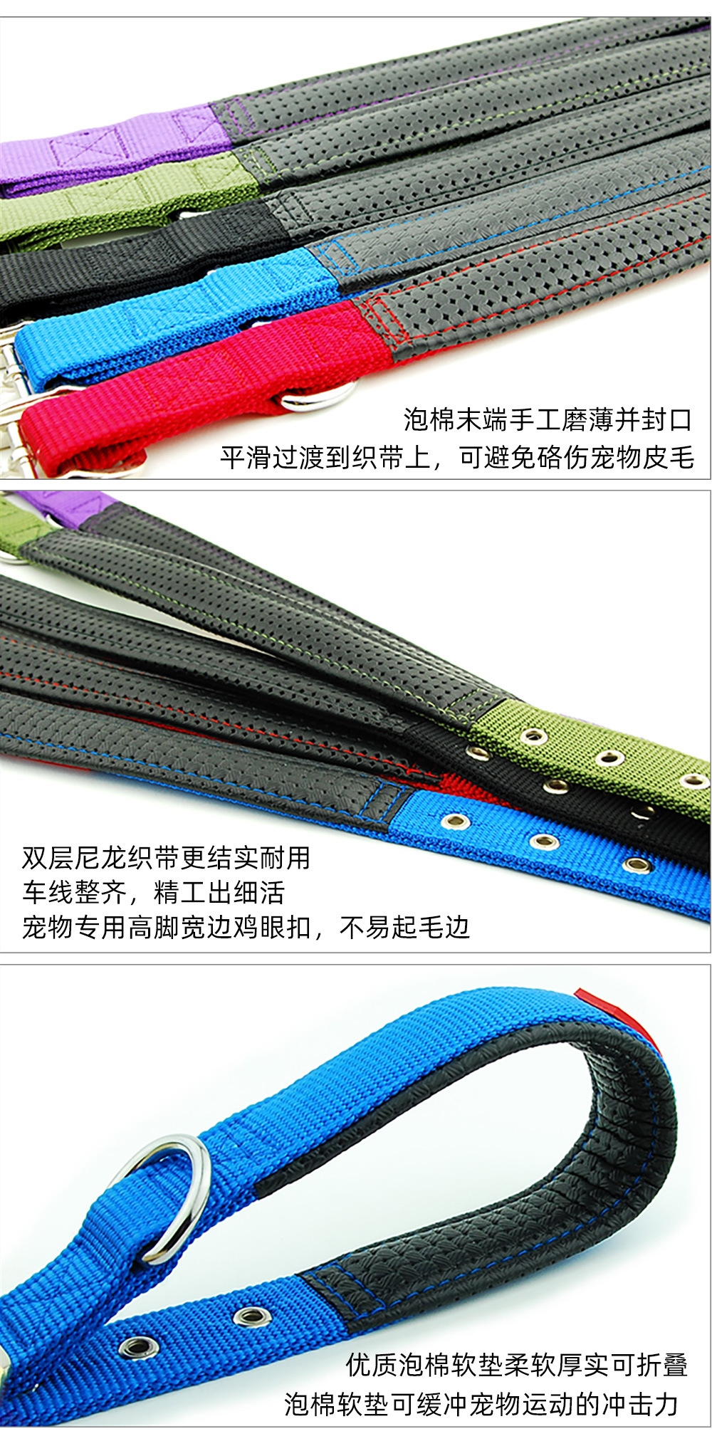5、拉带执手内层有厚实的泡棉软垫,可以缓冲和保护宠主的手不被勒伤;