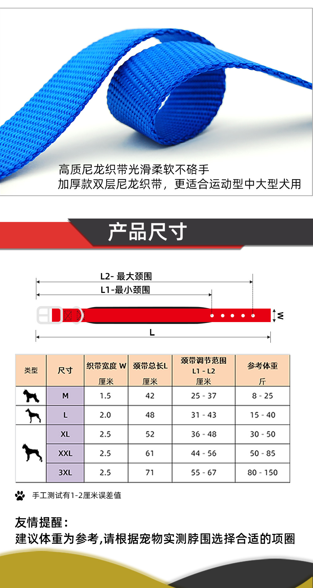 1 、高质尼龙织带柔软顺滑,双层项圈更结实耐用