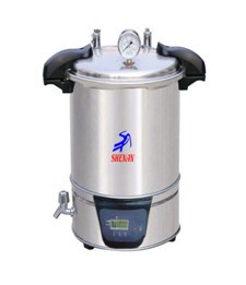 不锈钢手提式灭菌器功能简介:断水保护装置、自动开放冷空气、电加热方式、数码显示工作状态、自动控制循环灭菌程勋、操作简单、安全可靠。