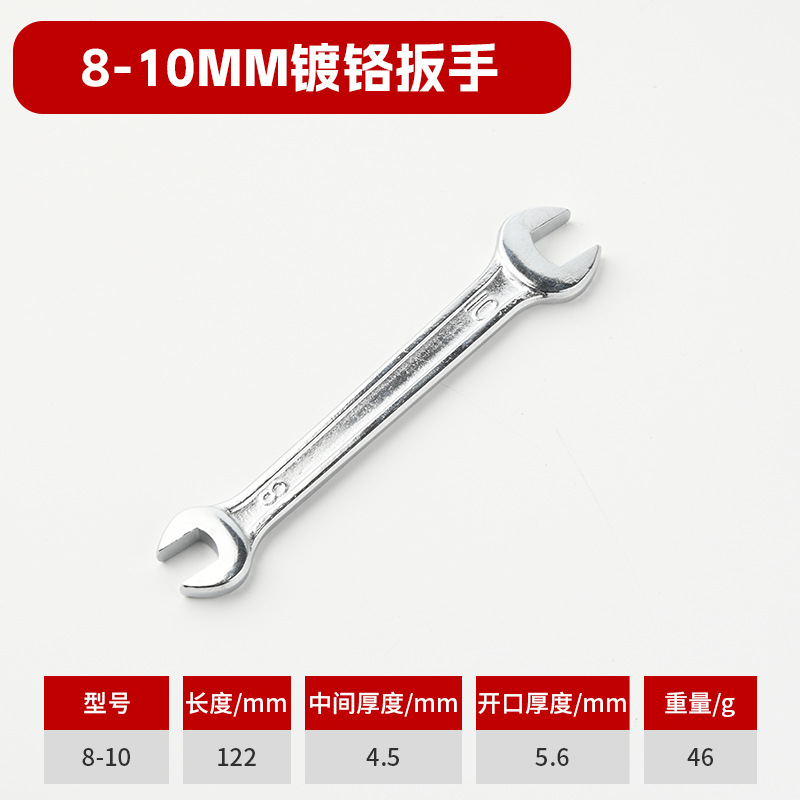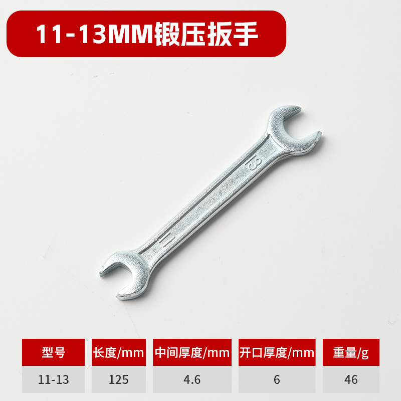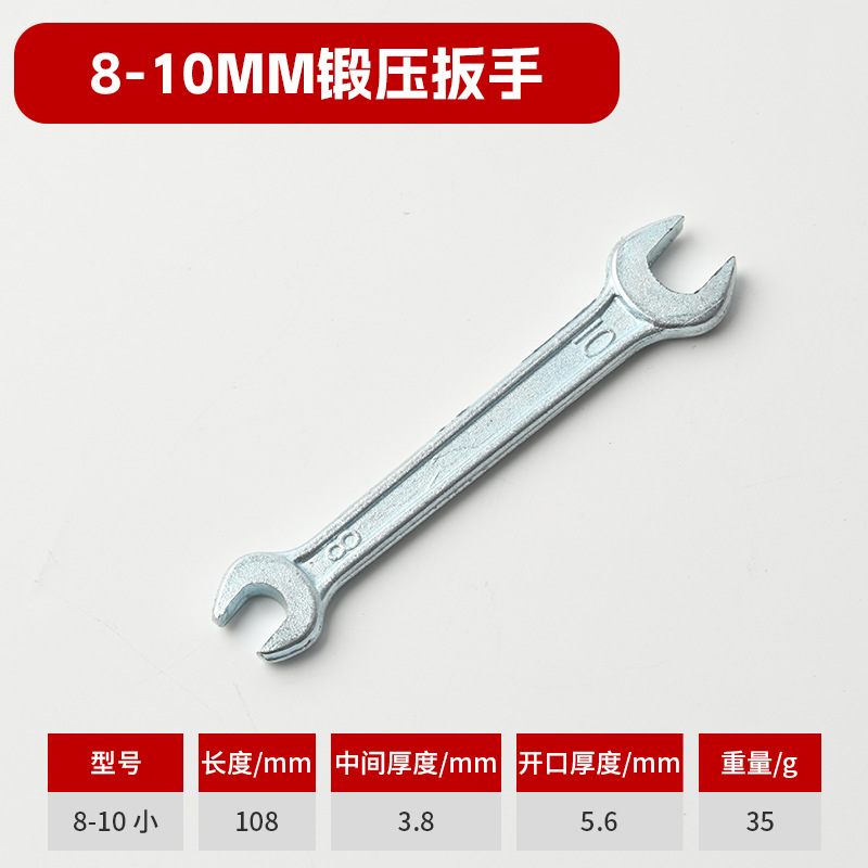 本品材质螺纹钢,锻压开口扳手,总长度小于国标,但二头开口标准,是工具包配货,与淘宝送礼佳品。