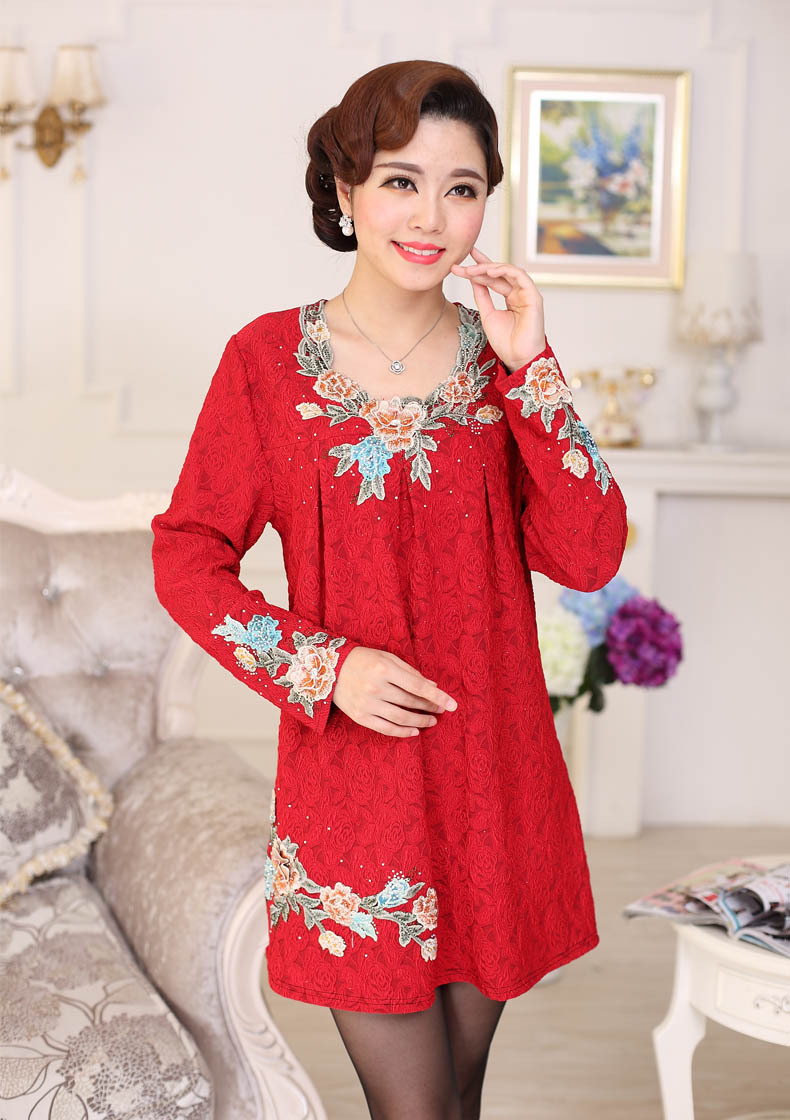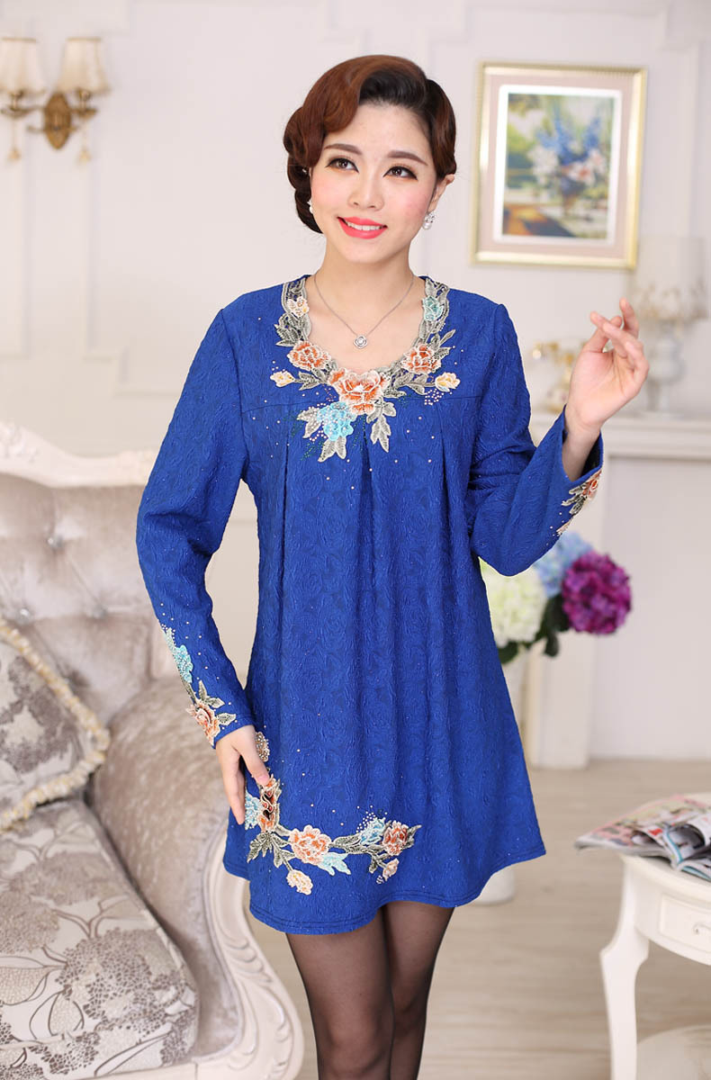 2020 для среднего и пожилого возраста, плюс толстое женское свободное модное платье для матери с вышивкой, Плюс Толстая юбка для доставки поколения