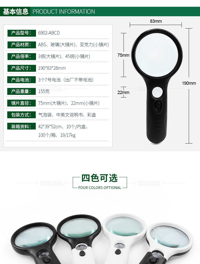 Chuda 3lED лампа признательность увеличительное стекло для чтения 4 вида цветов опционально 6902AB мать 45X двойное зеркало 75 мм