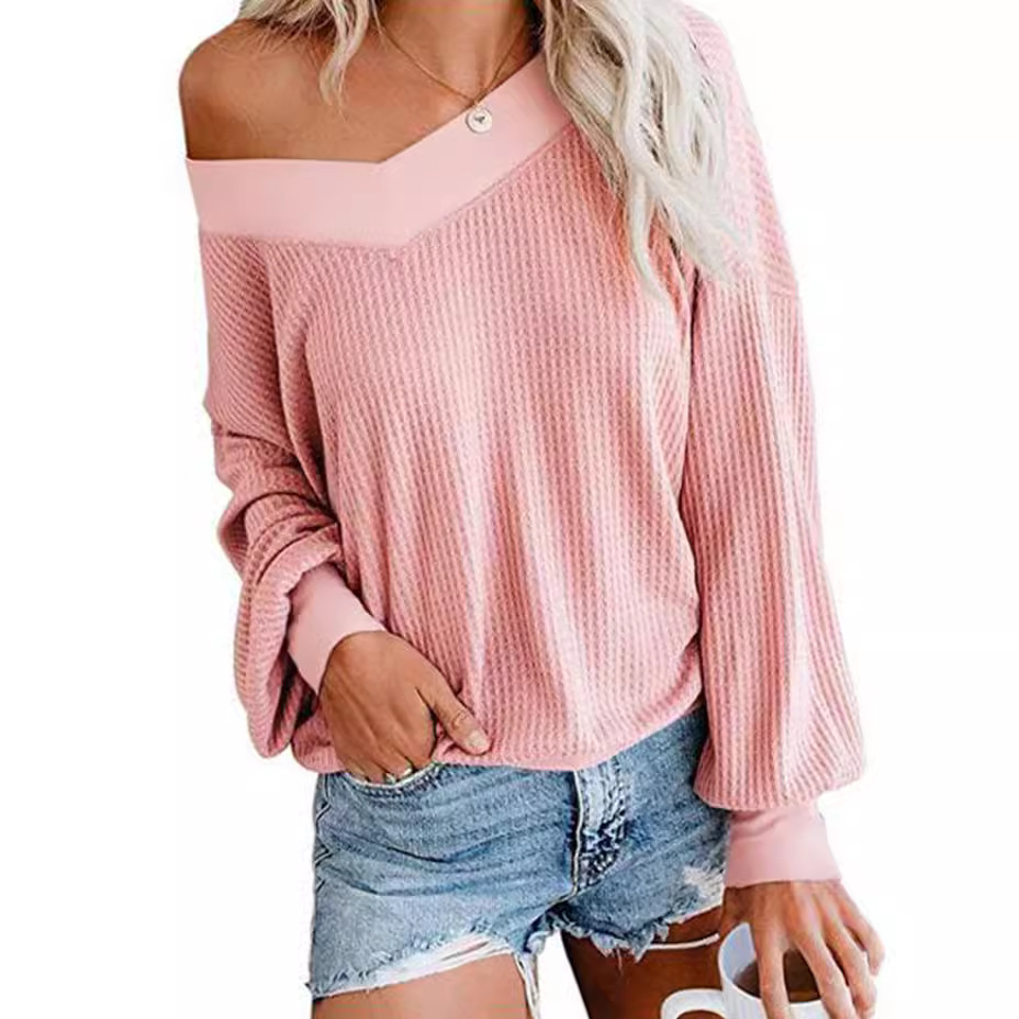 Женские топы с V-образным вырезом и длинным рукавом, осень-зима 2024, трикотаж, трансграничная поставка, хит продаж, в наличии