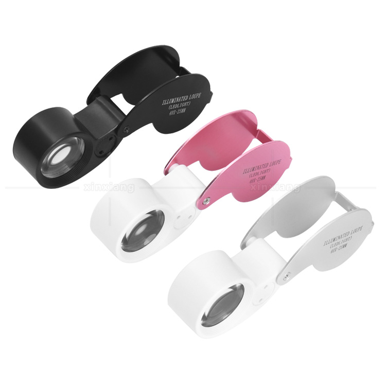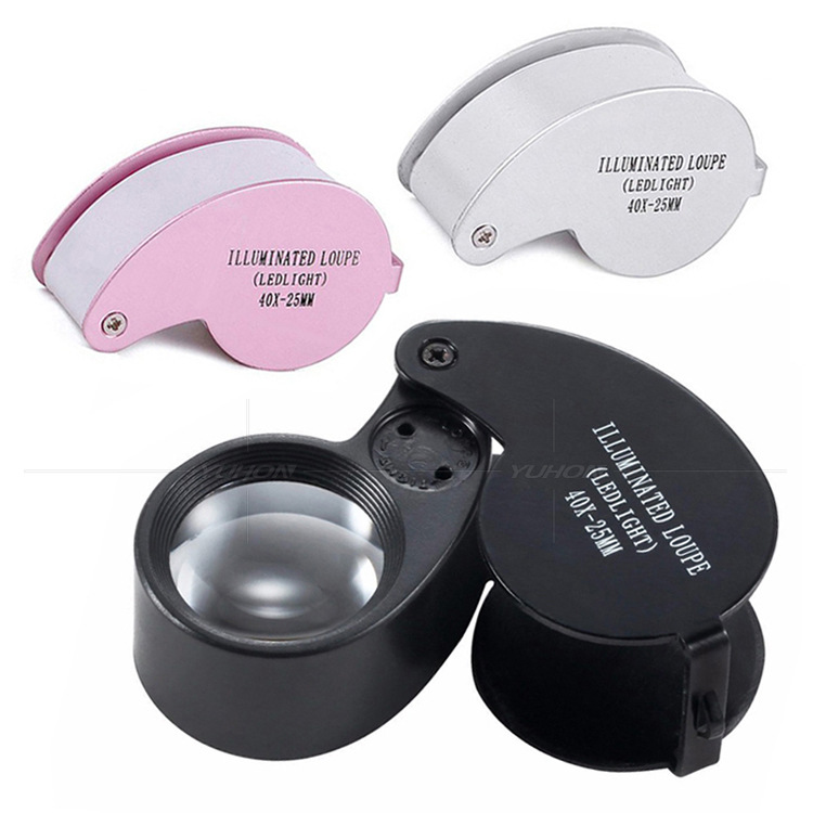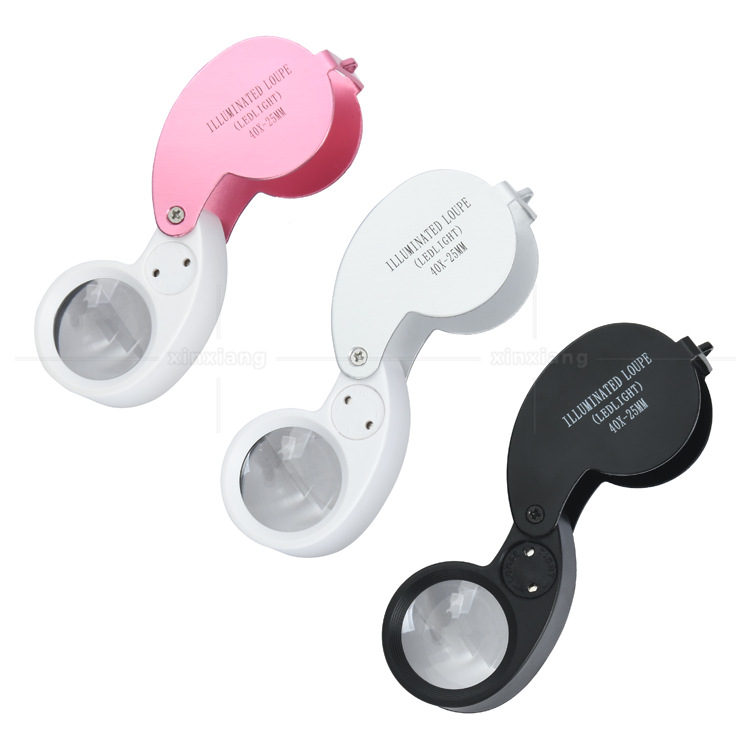Алюминиевый сплав 40 раз 25 мм двойные светодиодные фонари Алмазные антикварные украшения Нефрит Каллиграфия и живопись идентификация коллекция увеличительное стекло