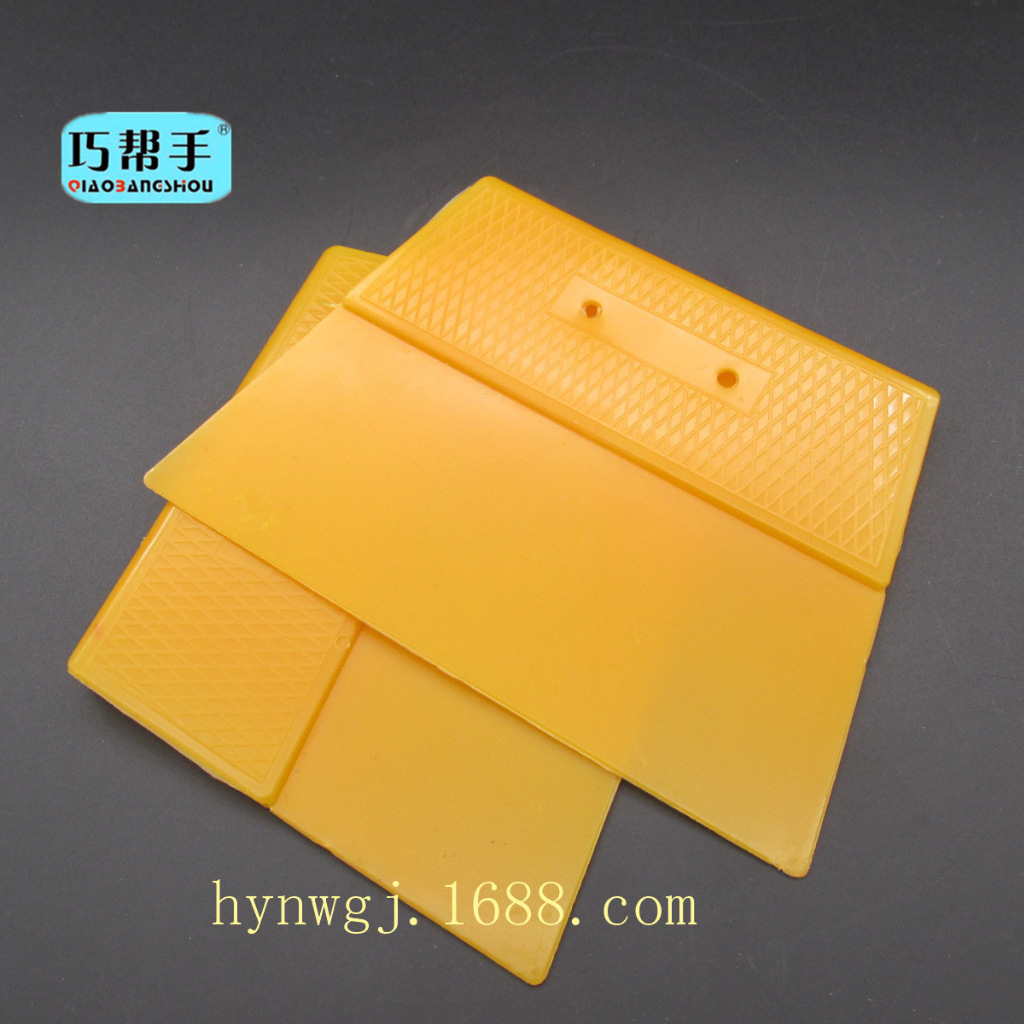 本刮片采用优质颗粒注塑而成,用料足,颜色正,做工圆滑,采用双层工艺,握感足,适合人体工程学,主要针对室内壁纸黏贴保证壁纸的平整型,对腻子工也有很大的帮助,也可以针对面食烘焙师傅和面切面的好工具,有需要的朋友欢迎您来洽谈合作。