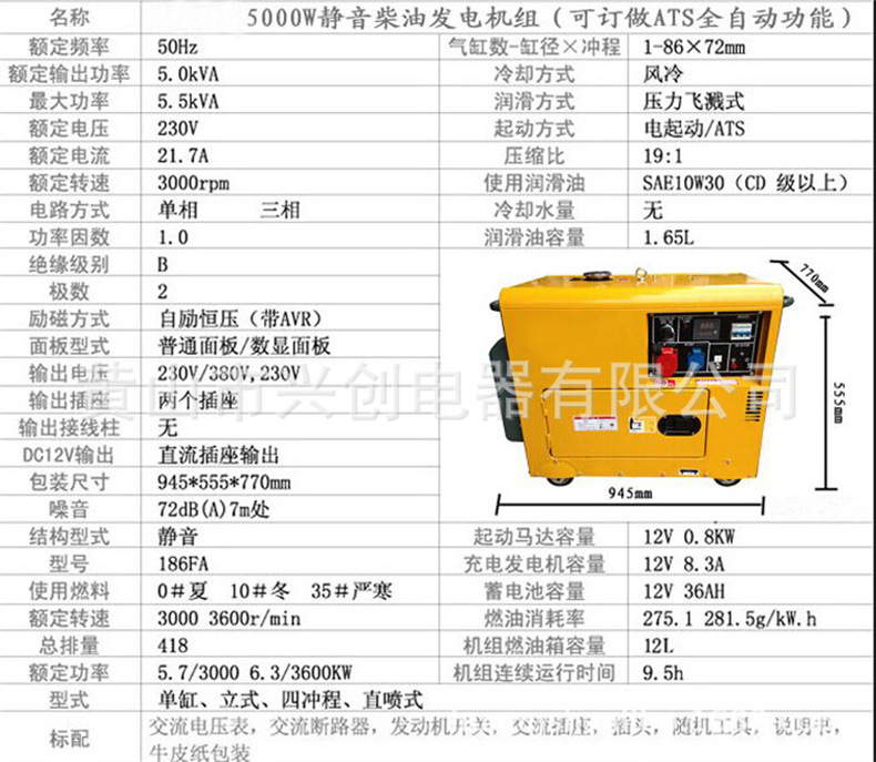 Генераторная установка с воздушным охлаждением 5 кВт однофазный 220 В Электрический старт бесшумный бытовой маленький 3 кВт 8 кВт трехфазный 500 В