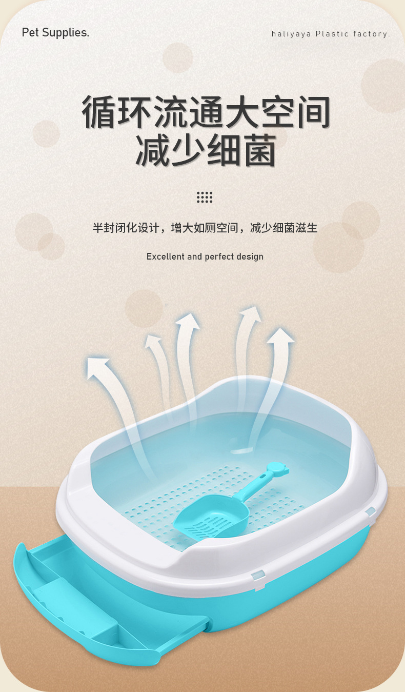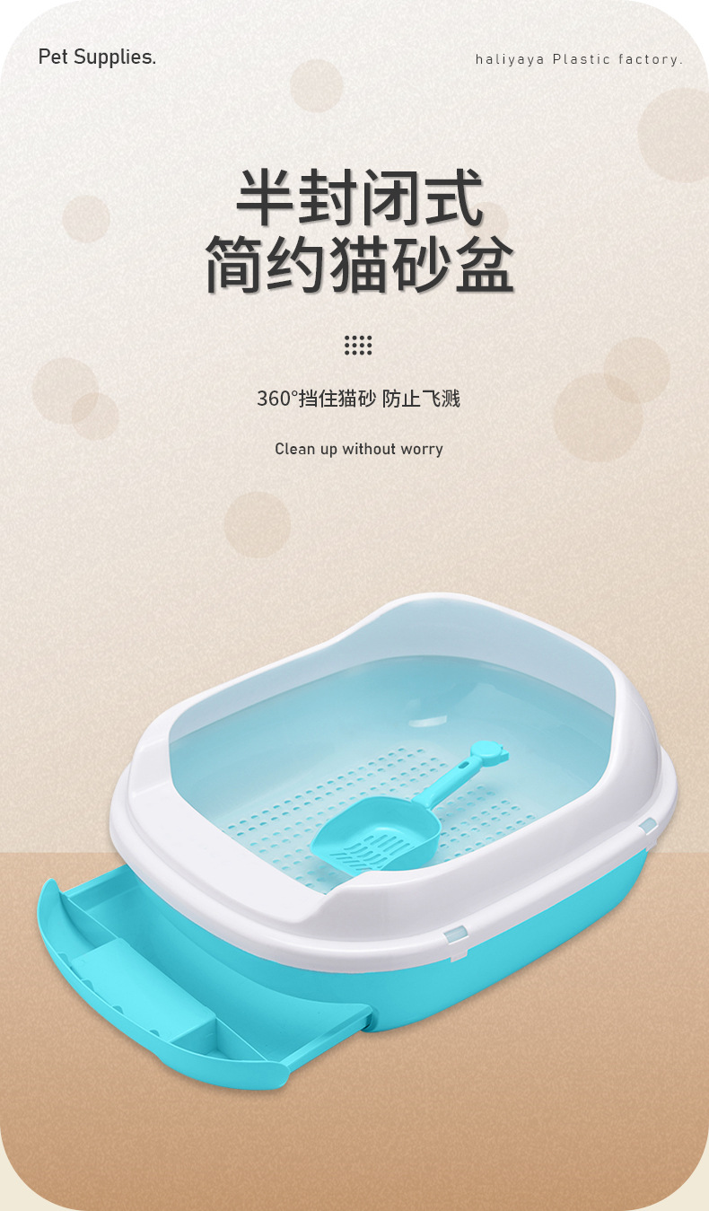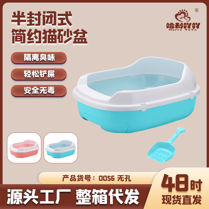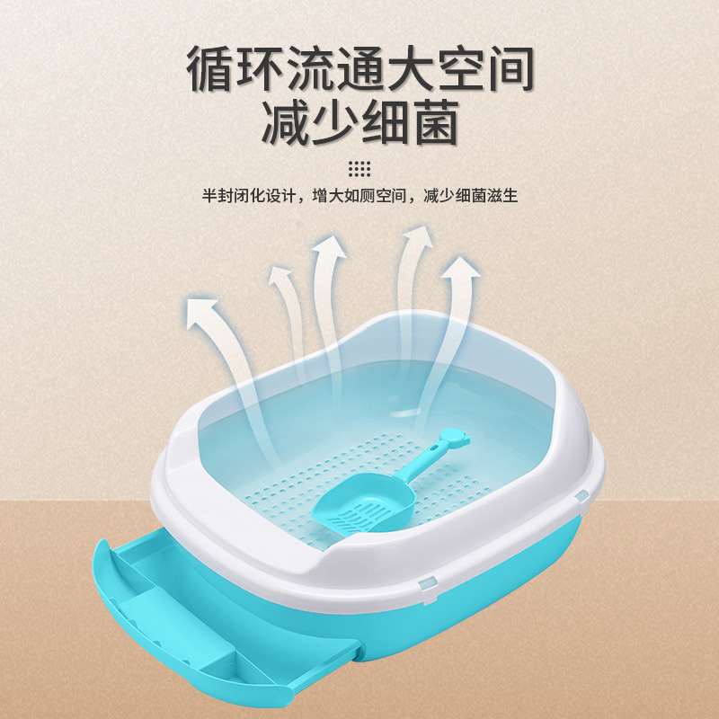 Пластиковый ящик для кошачьего туалета Ящик для чистки домашних животных Полузакрытый ящик для кошачьего туалета Двухслойный ящик для кошачьего туалета 0056