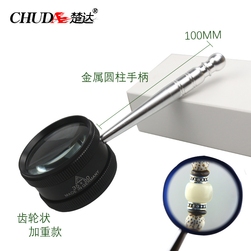 Chuda 35 раз 50 мм ручной металлический цилиндр для чтения антикварные украшения идентификационное увеличительное стекло с зеркальной тканью
