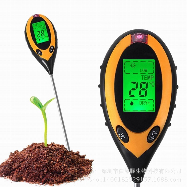 电子数显四合一土壤分析仪是最新的土壤速测装置,主要测试土壤的酸碱度、水分湿度、温度以及植物光照强度,使用一节9V碳性电池,操作简单探针长度200毫米。这个仪器通过液晶显示测量的参数。本仪器也具有电量低指示和自动断开电源功能。它节省时间和精力、效率高。本仪器适用于鲜花和草种植、园林绿化。