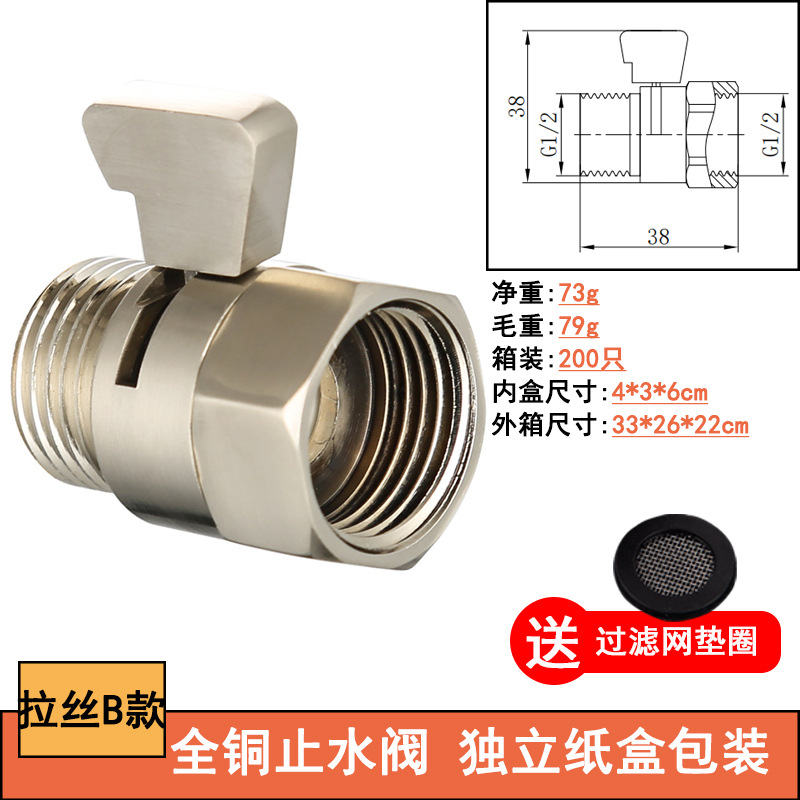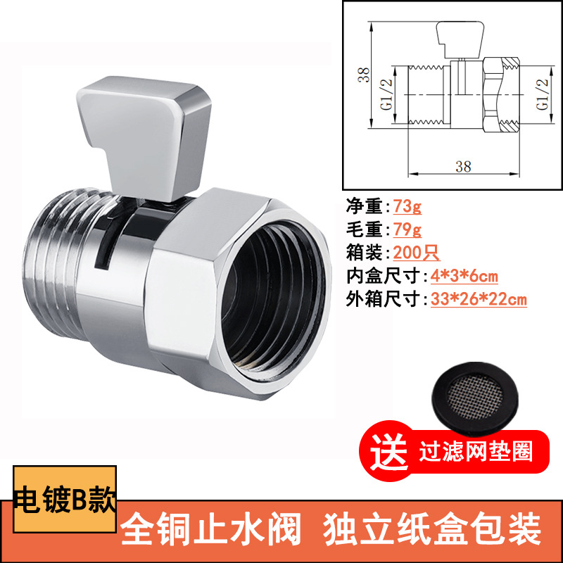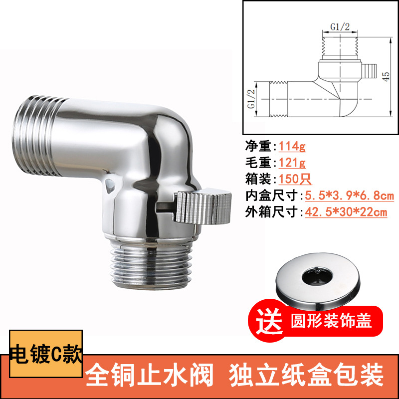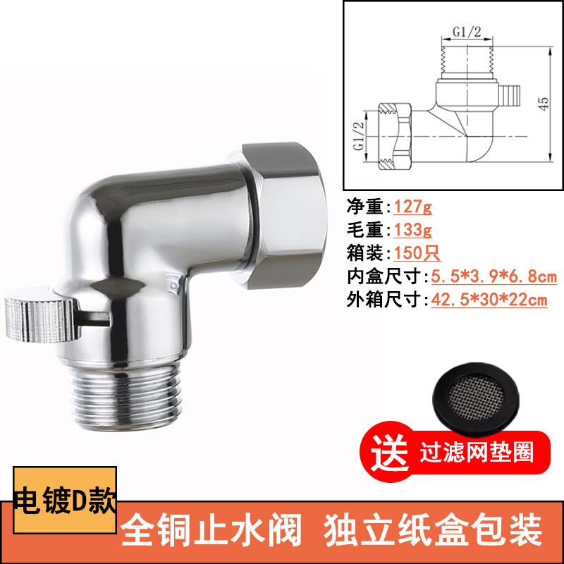 Цельномедный прямой переключатель-клапан 1/2 дюйма с внутренними и внешними разъемами, угловой клапан для унитаза, регулятор потока, ручной душевой распылитель, запорный клапан.