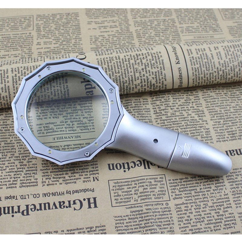 75 мм шесть светодиодных фонарей в форме зонтика кружевной портативный пожилой HD стеклянный объектив для чтения 4-кратное увеличительное стекло