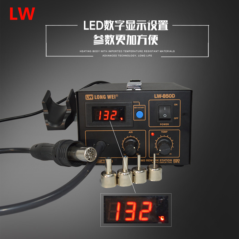 LW850D Термофен Longwei 550 Вт, высокая мощность, бессвинцовая Антистатическая усовершенствованная платформа для распайки с горячим воздухом