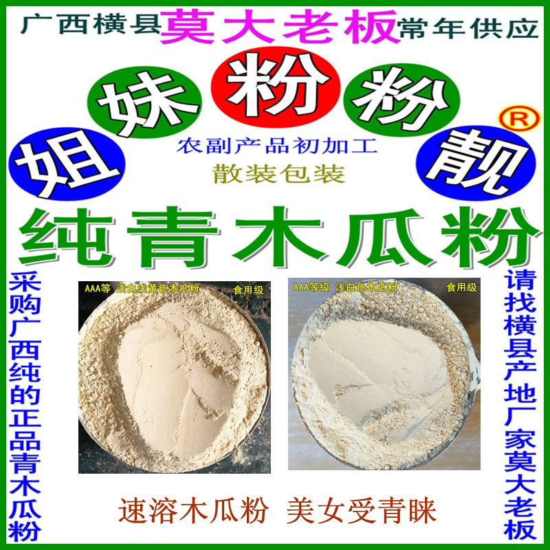 木瓜粉的颜色及等级分有为:白色的为5好;乳白色的为4好;浅黄色并略带有乳白色的为3好,浅黄色的为2好;黄色或暗黄色的为1好。即是分等级的,因此,在价格上也存在着有点区别的,购买时最好联系下客服再购买!否则只默认发货为浅黄色的木瓜粉。