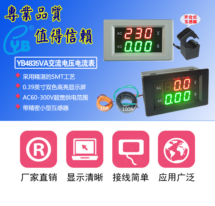 YB4835VA AC0-500V цифровой дисплей Вольтметр переменного тока Напряжение Амперметр регулятор напряжения головной