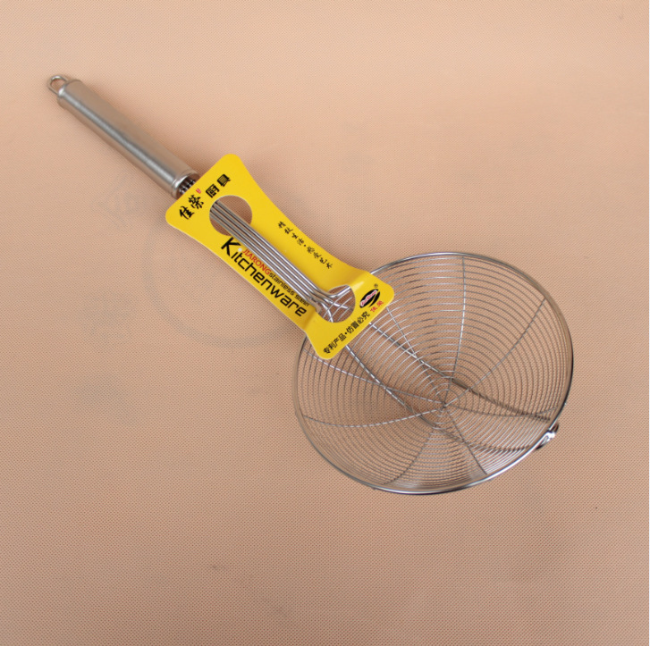 Ситечко из нержавеющей стали с круглым дном и стальной ручкой для хот-пота, лапши, пельменей, жарки, бытовой скиммер, утолщенное ситечко.