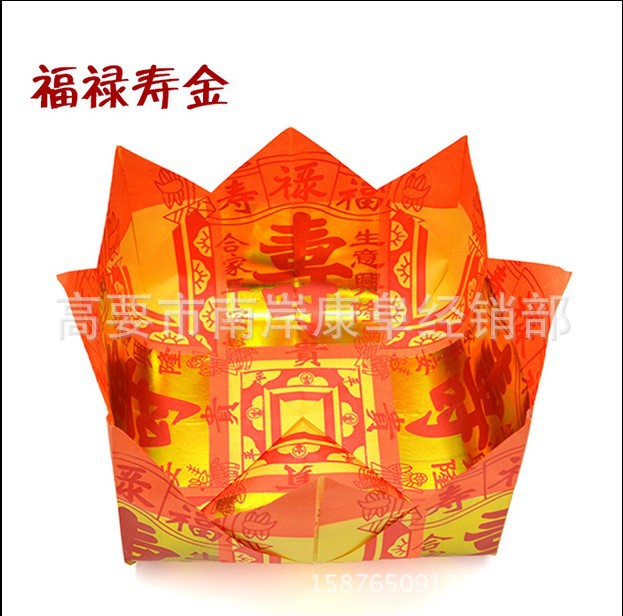 Горшок сокровищ лотоса, тарелка сокровищ, горящая бумага, безопасное золото, серебро, долголетие, золотой лотос, благородная бумага, горшок для слитков, бумажная палитра