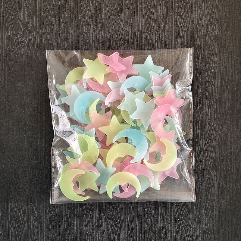 ★每袋都配有双面胶贴,当你躺在床上,四周都是星星包围着你,感觉是睡在云端,星星月亮在对你眨眼,够浪漫吧。使用夜光粉制成,环境越黑,装饰贴越亮。产品出口欧美等地,符合安全标准。