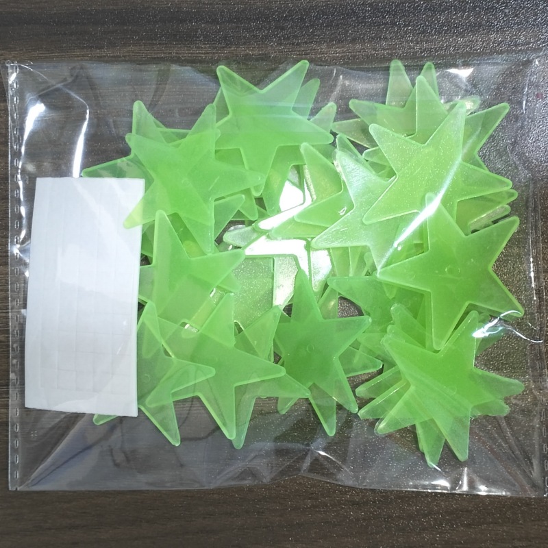 夜光星星自身不会发光,只有光照后才可以发光!在白天或明亮处发光效果是不明显的,只有在相对黑暗处才可以显现夜光荧光效果!夜光材料只是一种在黑暗处可以发出萤光(萤火虫光)的环保材料,和电光源材料没有可比性!不要误以为夜光能跟灯光相媲美。