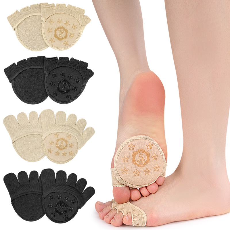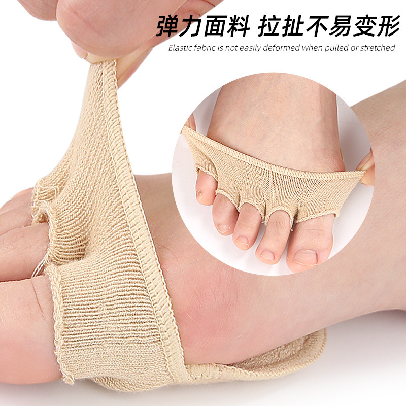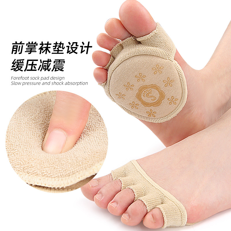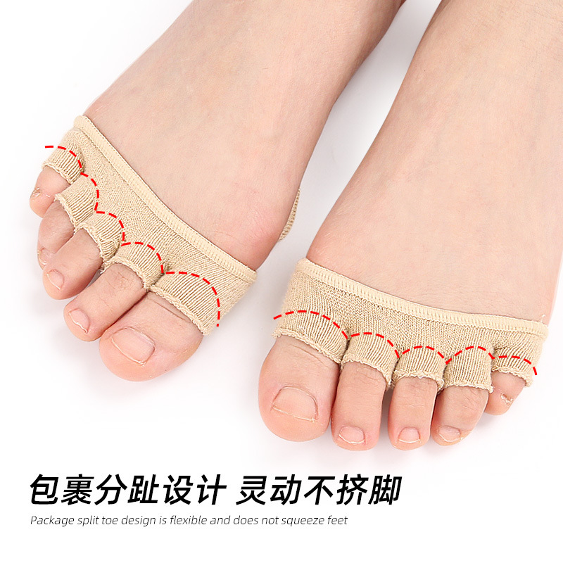Склеенные носки с пятью пальцами Половинчатая хлопковая впитывающая пот передняя часть стопы Половина ладони с открытым носком Силиконовые Нескользящие невидимые носки на высоком каблуке